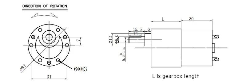 DC12V Reduction Gear Motor with Geared Box & D-Type Shaft:12mm JGB37-3530