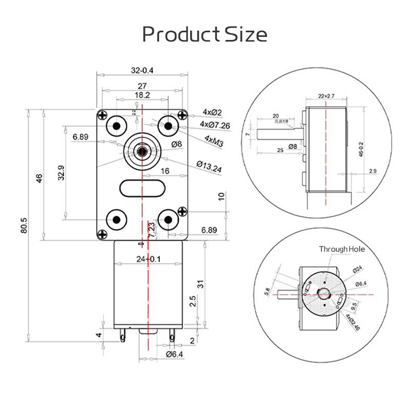 JGY370 Worm Gear Motor DC 12V 8MM D7 Axis Gearbox Reducer 6V 24V Self-locking Reverse Gearbox Length 25MM Low Speed Micro Motor