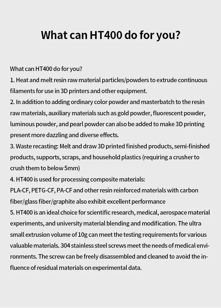 JH HT400 Desktop Bumblebee Extruder for 3DPrinting Filament Automatic Wire Diameter Control Winding for PLA-CF PETG-CF PACrusher