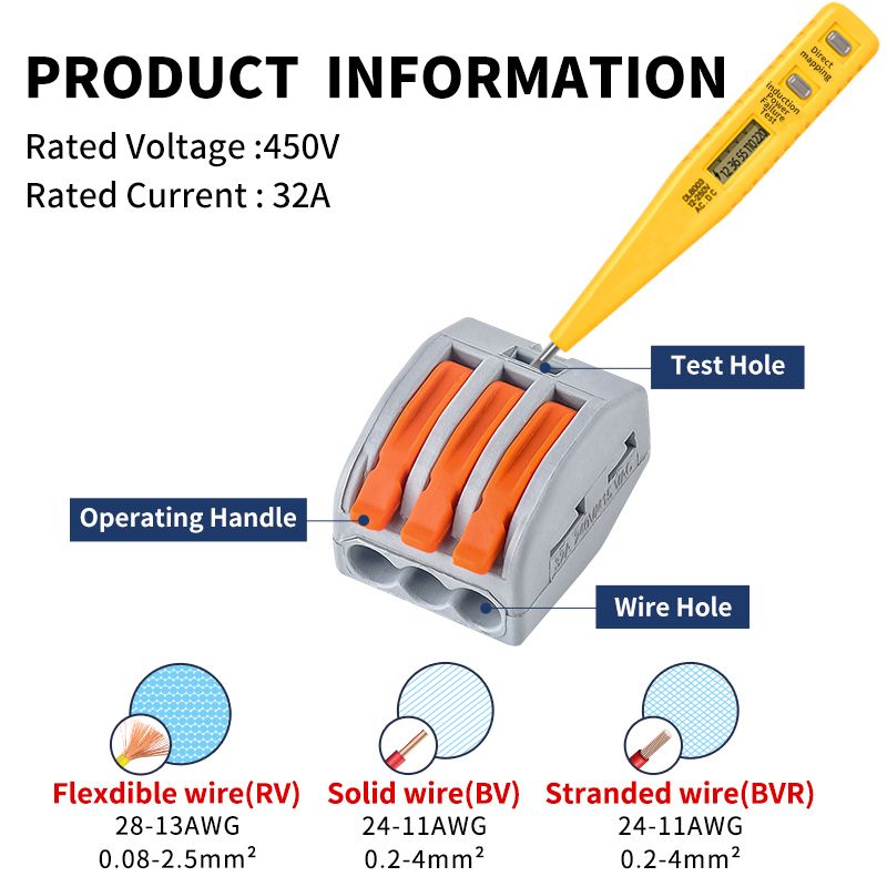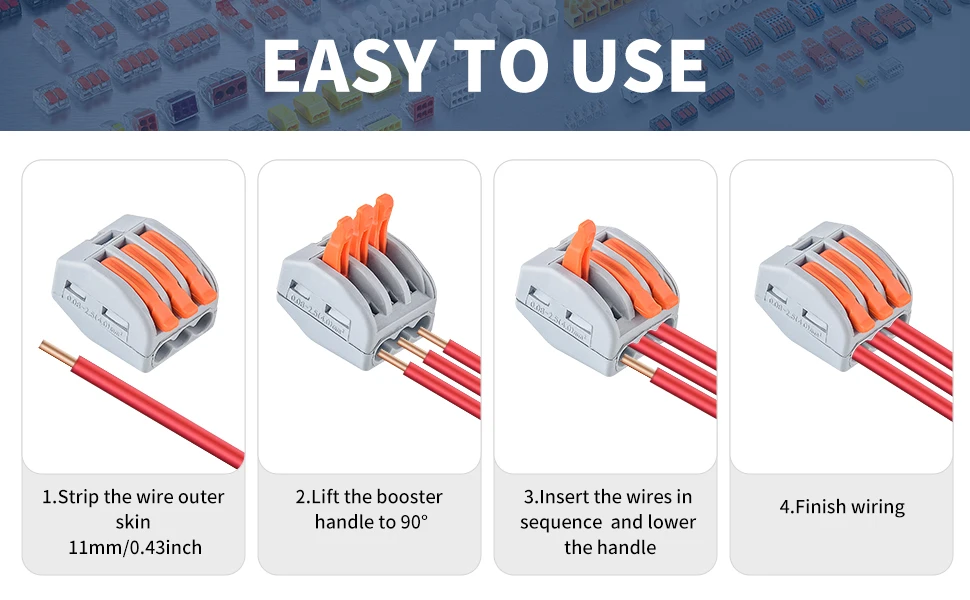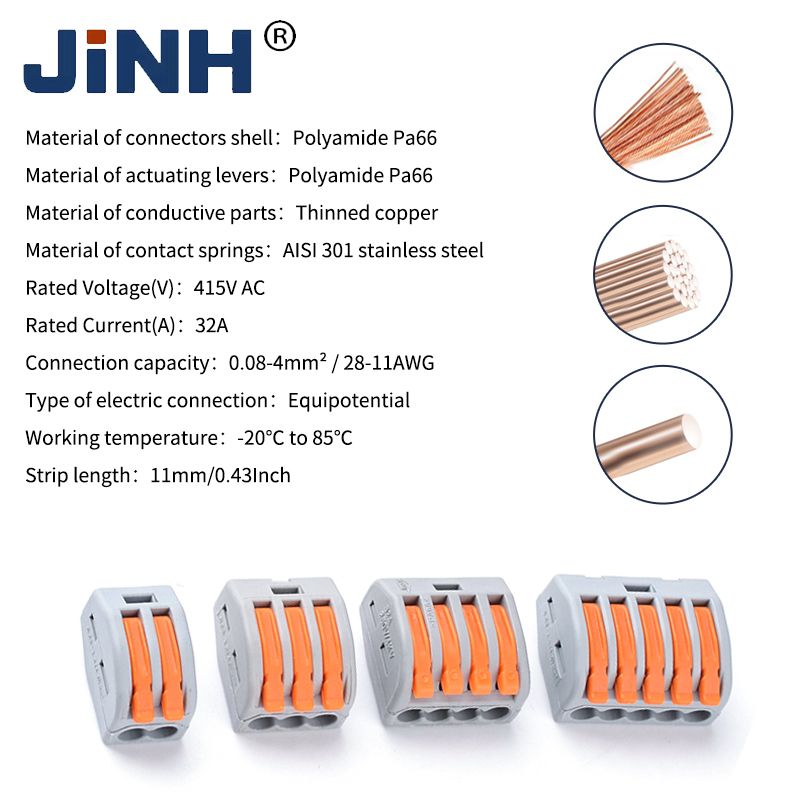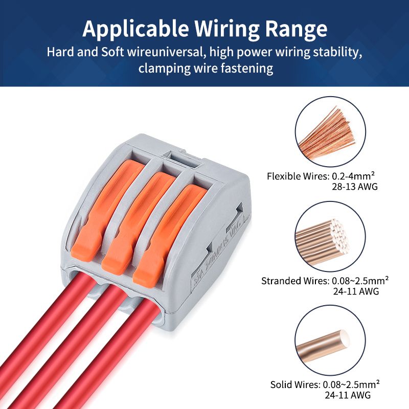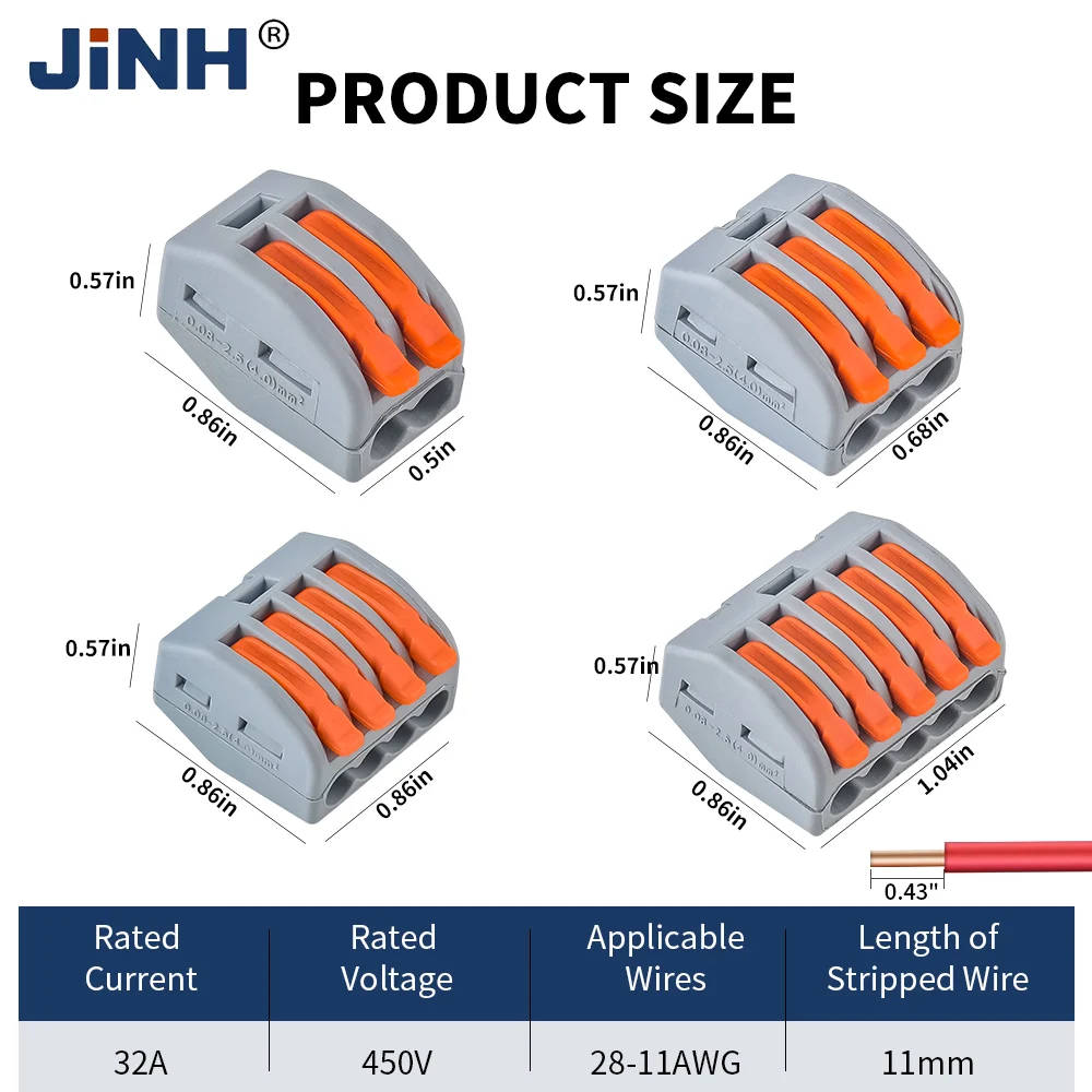 JINH 43Pcs CMK41 Lever Connector Nuts Assortment Pack Quick Splicing Electrical Terminal Blocks Standard Solid Flexible Wires
