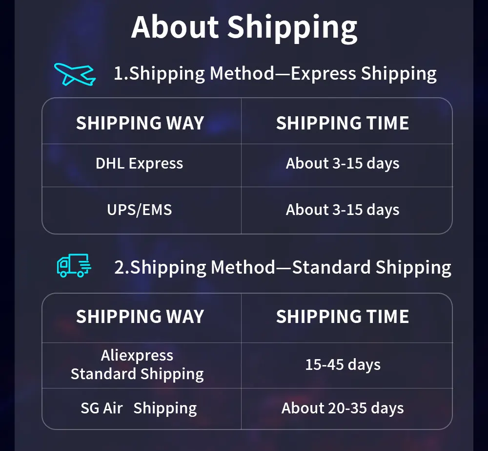 Please note that delivery times are estimates and may vary due to customs procedures, carrier delays, weather conditions, or other unforeseen circumstances.