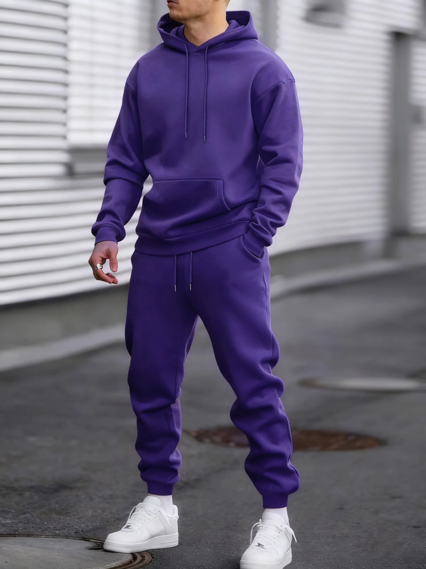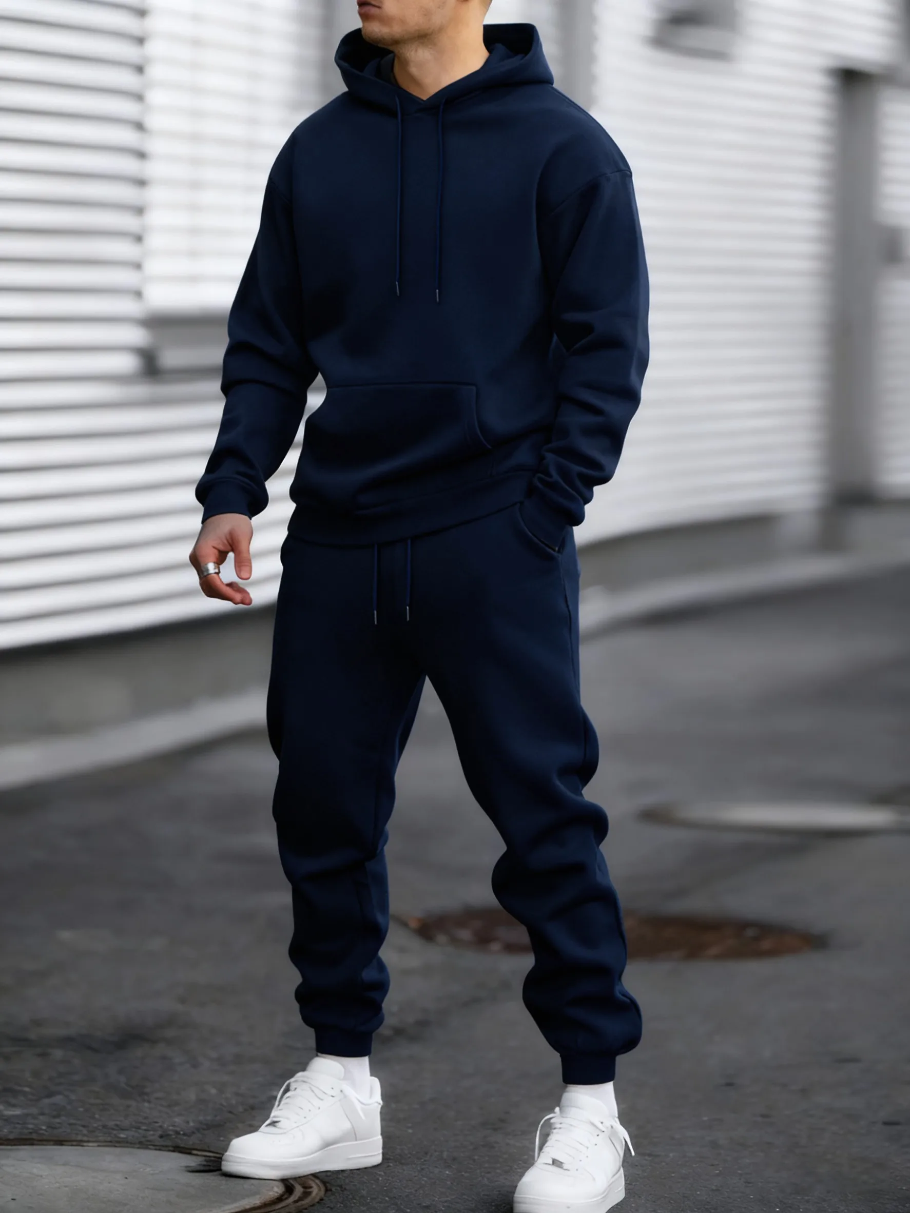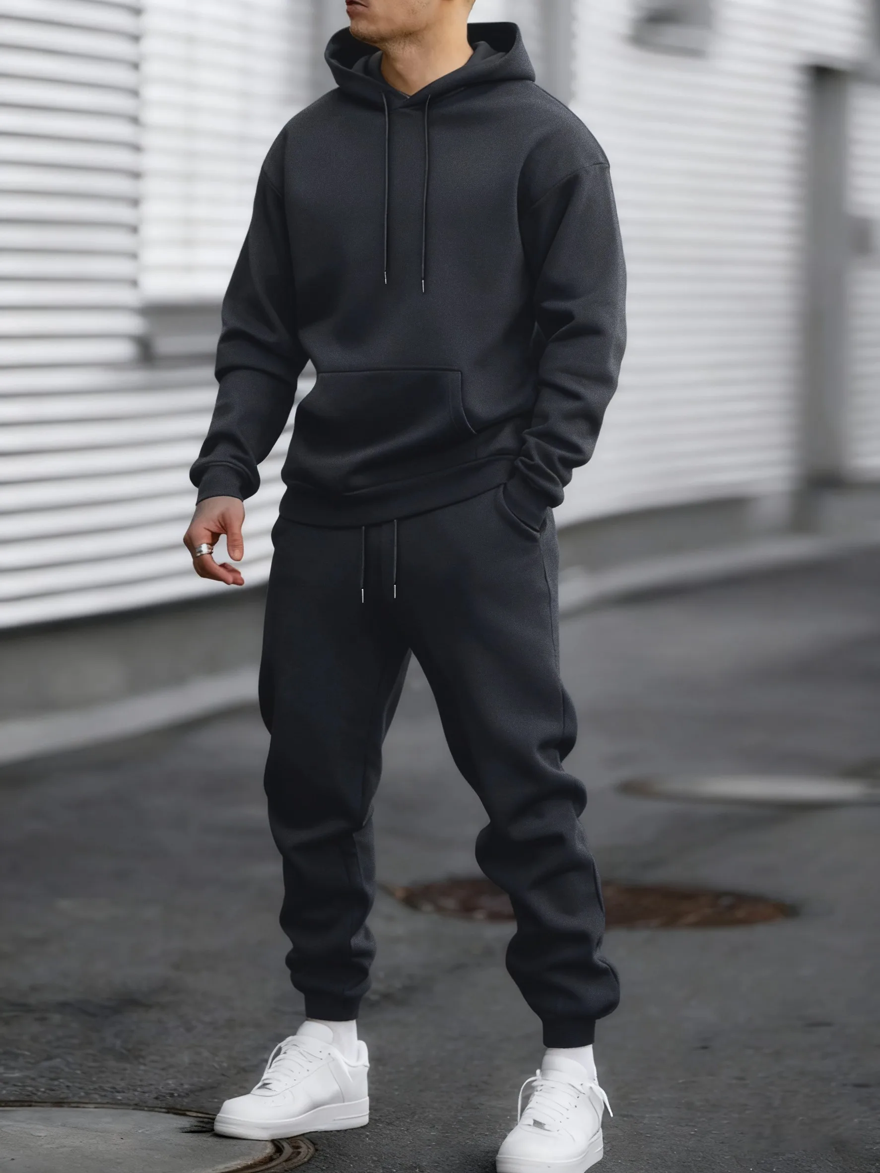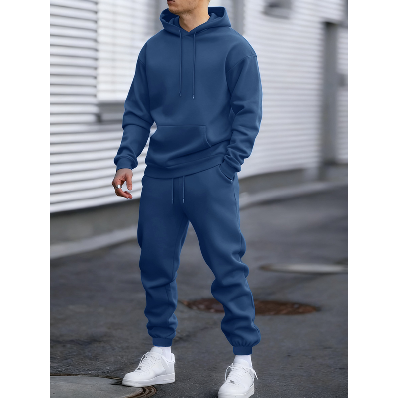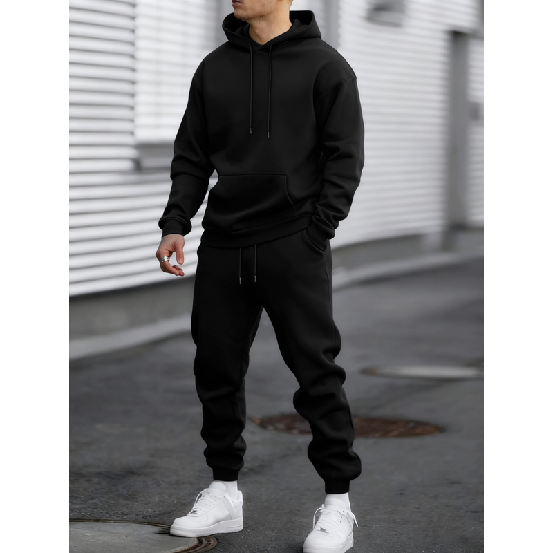 Jogging Solid New In Men's Set Streetwear All-Match Casual Hoodie Sweatpant Suit Fleece Loose Clothes Autumn Sport Long Pants
