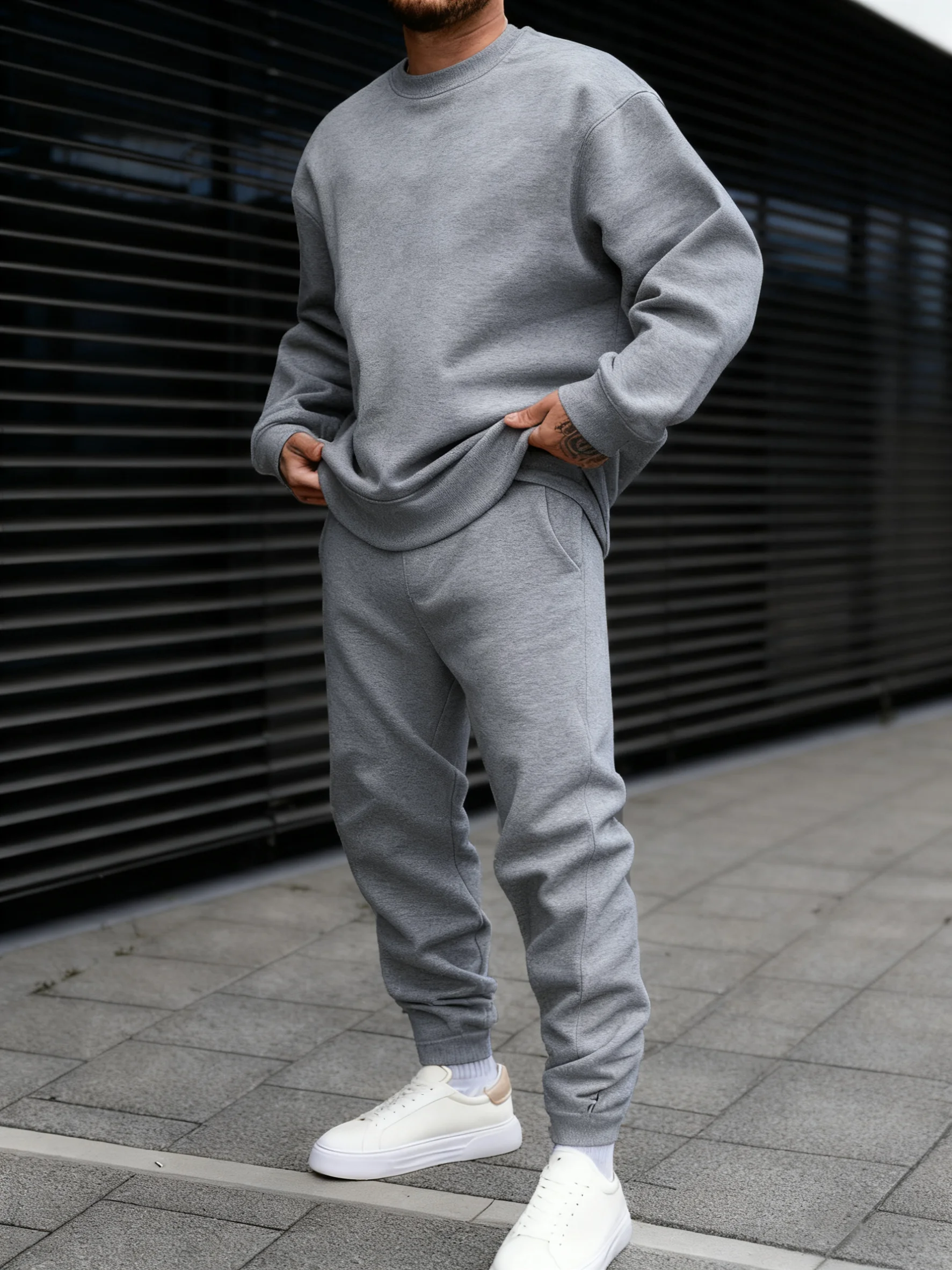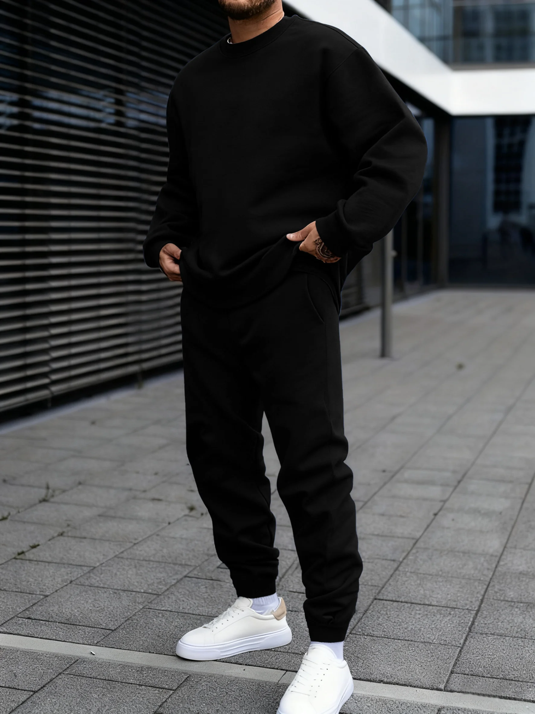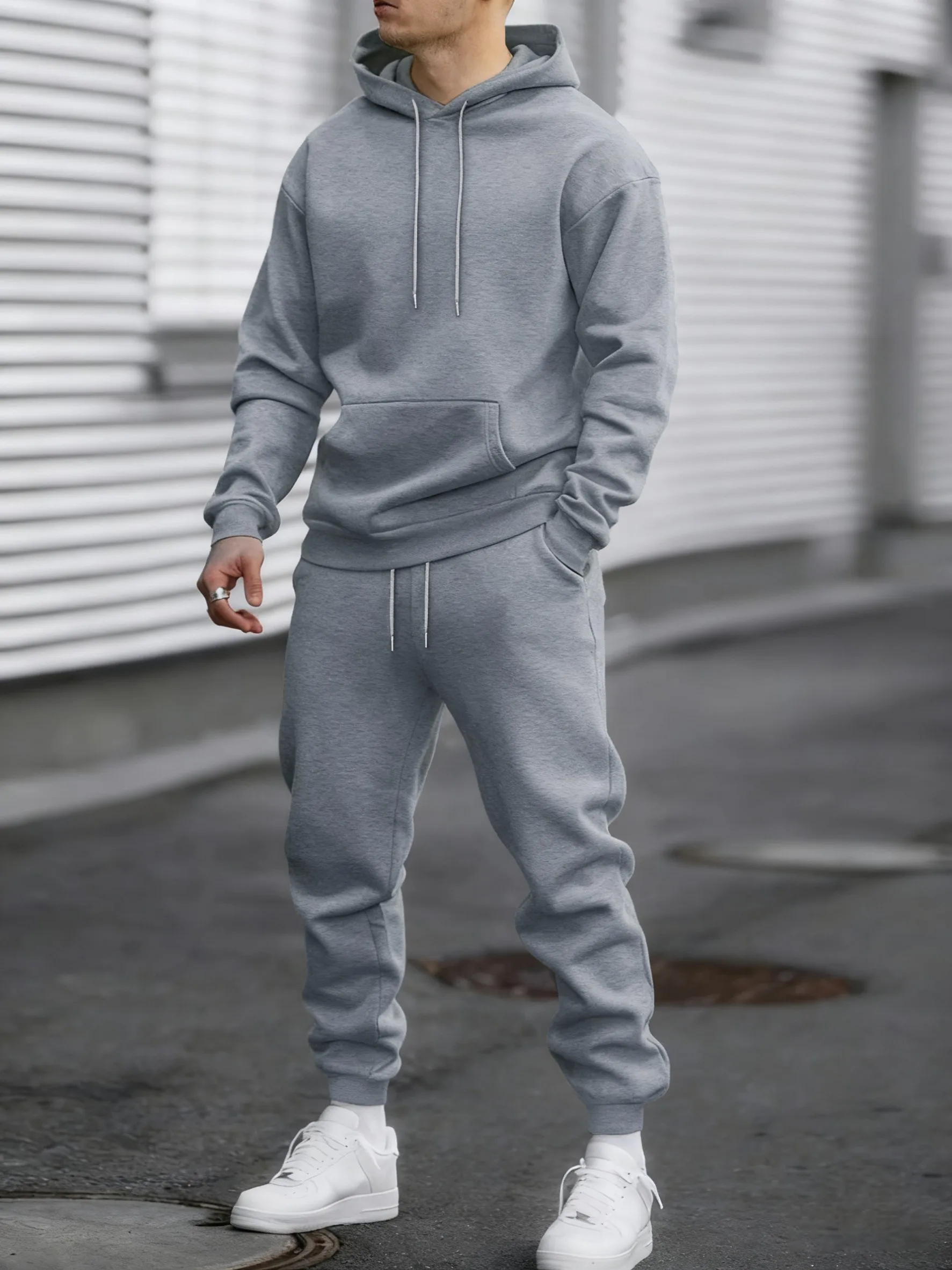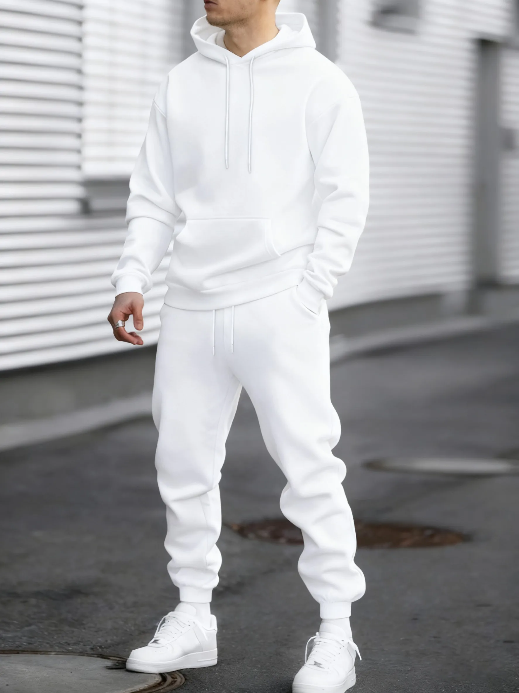 Jogging Solid New In Men's Set Streetwear All-Match Casual Hoodie Sweatpant Suit Fleece Loose Clothes Autumn Sport Long Pants