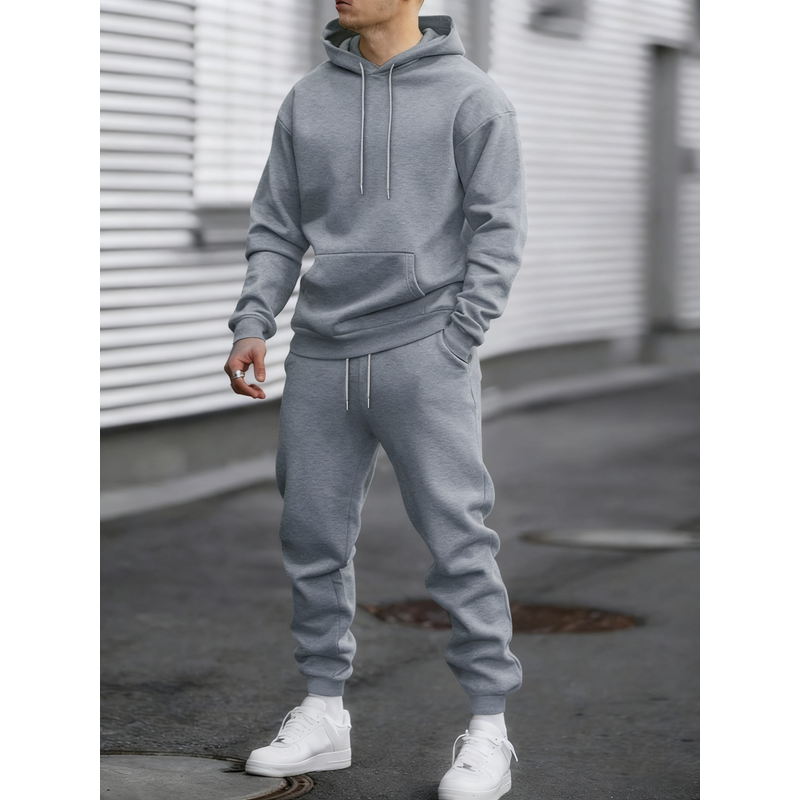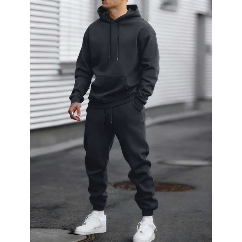 Jogging Solid New In Men's Set Streetwear All-Match Casual Hoodie Sweatpant Suit Fleece Loose Clothes Autumn Sport Long Pants