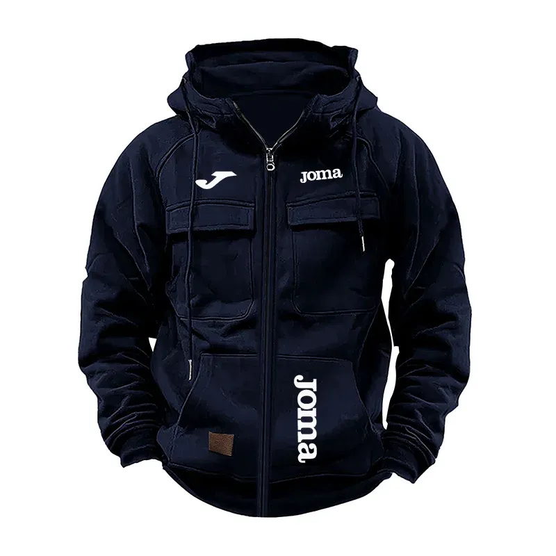 JOMA Men's Loose Fleece-lined Hoodie Jacket with Multiple Pockets Retro American Style Spring Autumn Winter Casual Outerwear
