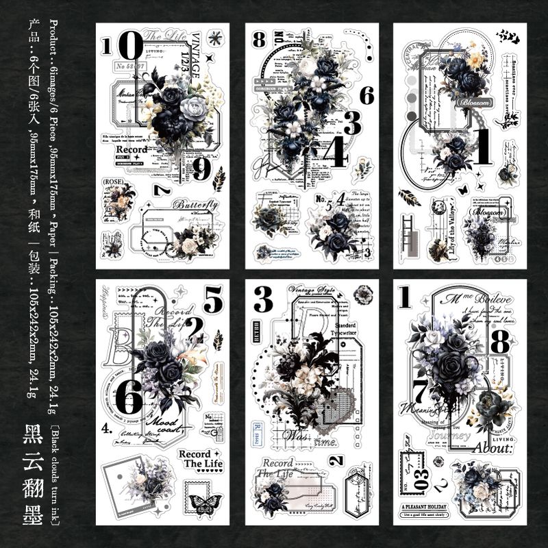 Journal GO 6pcs Flower Shadow Decorative Sticker Fresh Plant Flowers Collage Scrapbooking Label Diy Diary Journal Planner Label