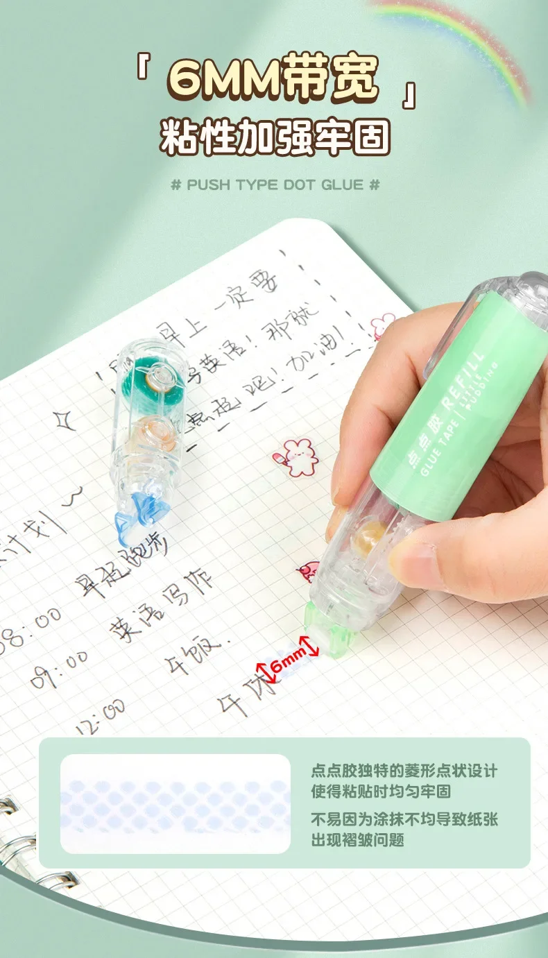 Journamm 5m*6mm Cute Dots Glue Tape DIY Scrapbooking Collage Photo Album School Stationery Double Sided Adhesive Roller Tape