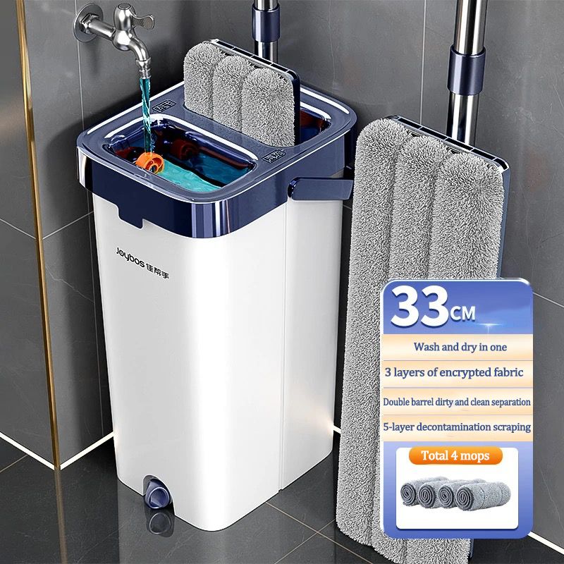 JOYBOS Spin Mop Hand Free Flat Floor 33cm With Bucket 360 Rotating Washable Automatic System Cleaning House Mops Brooms Tool