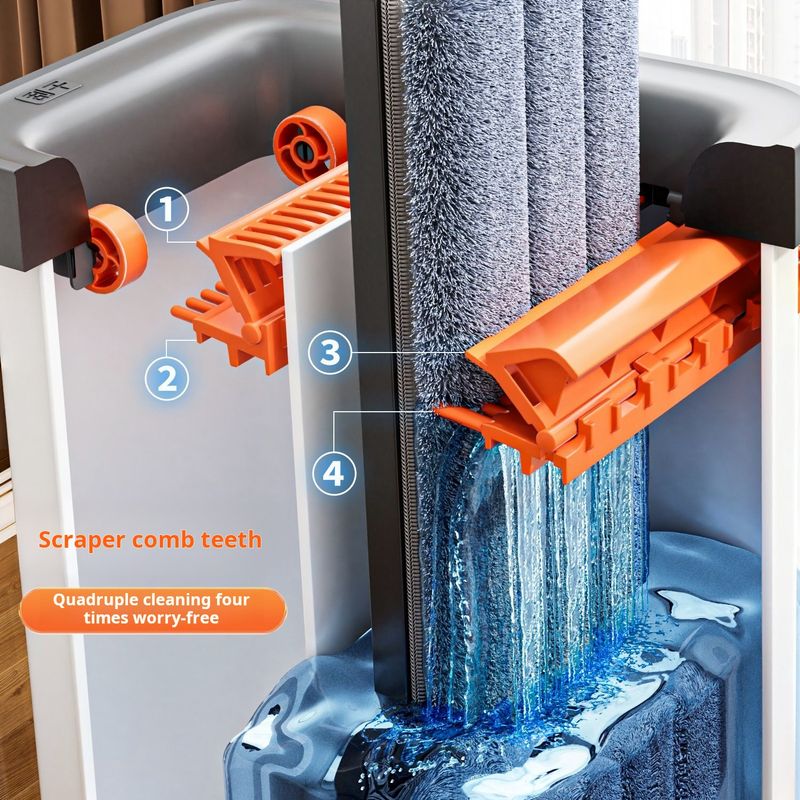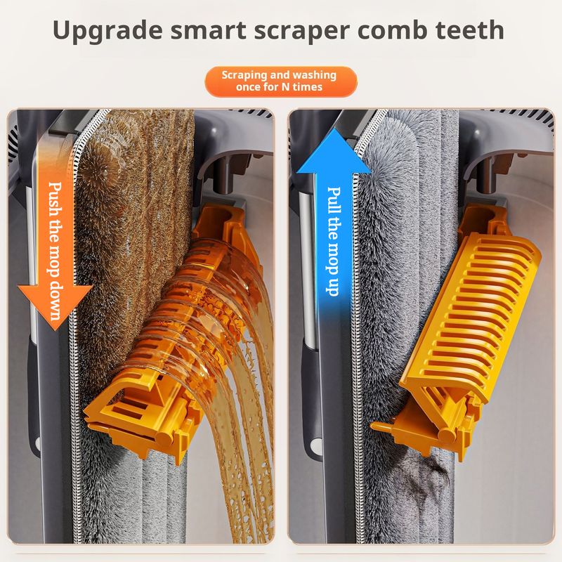 2.【Upgraded scraping and washing system】, thickened and durable PP material, four times cleaner, and added 3-layer scraping + 8-layer power-assisted rollers. Scraping and washing once is equivalent to three times, Comes with comb teeth,No need to manually remove hair impurities,making the mop as good as new