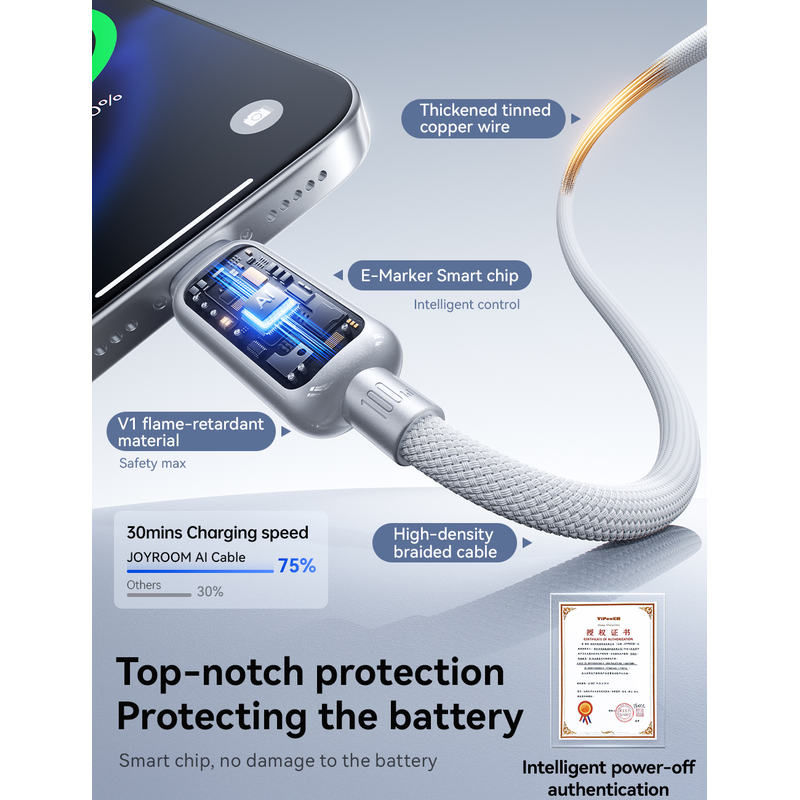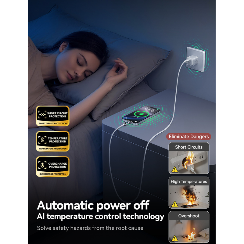 Automatically shuts off when fully charged, protecting your phone's battery and allowing for safer charging at night.(30-45 minutes after the battery is fully charged, the protection function will be automatically turned on and the power will be cut off.)