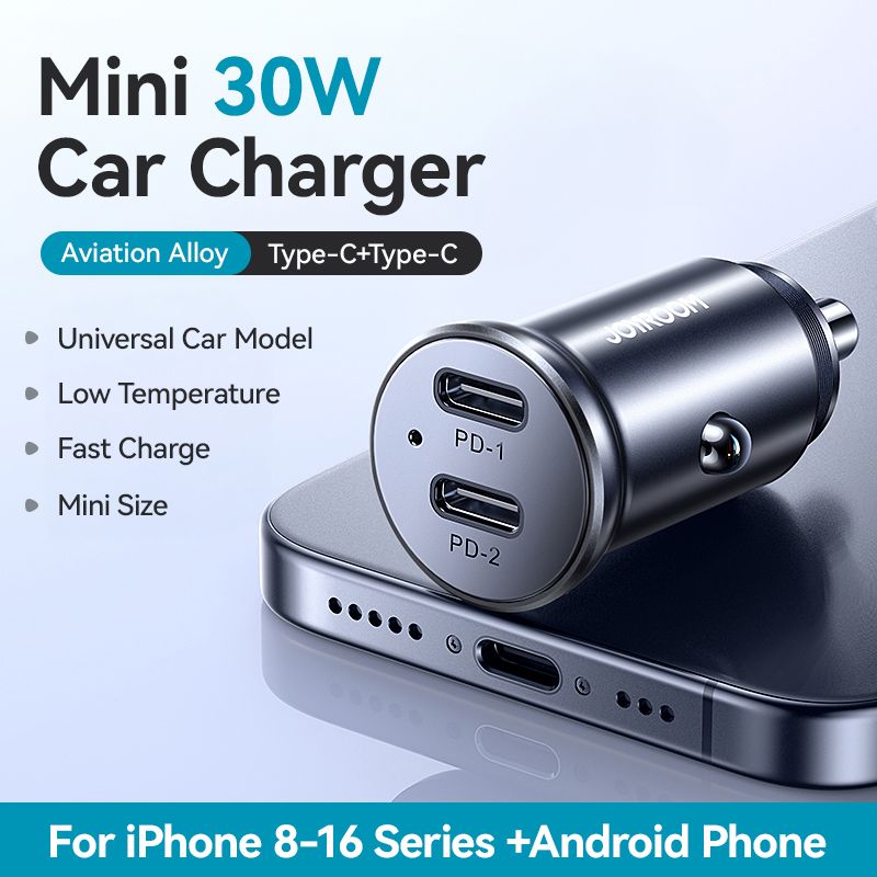 Joyroom 30W Mini Car Charger PD QC3.0 USB Type-C Fast Charging Car Charger Dual Ports Phone Charger For iPhone Samsung Galaxy