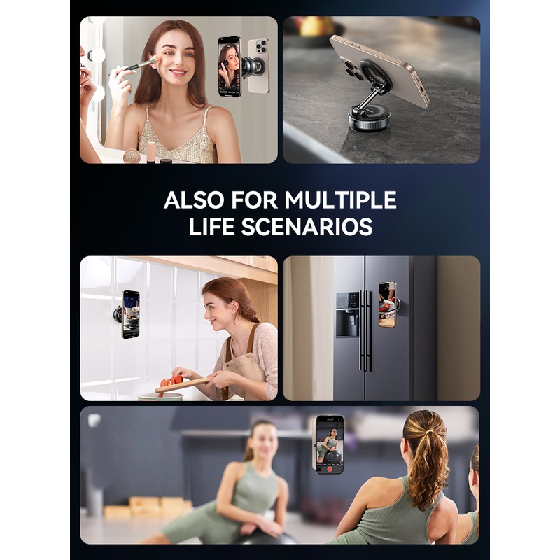 3.【Multi-Scenario Use Beyond Your Vehicle】More than just a car phone holder - transform any smooth surface into a hands-free station! Stick it on kitchen countertops as a recipe viewer, office desks for video calls, or gym mirrors for workout routines. The dual-purpose magnetic phone holder for car and home features scratch-free suction that works equally well on granite, glass, or laminated surfaces. Carry one device mount that serves all your mobile needs - from road trips to Zoom meetings.