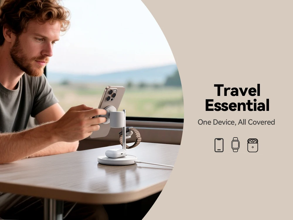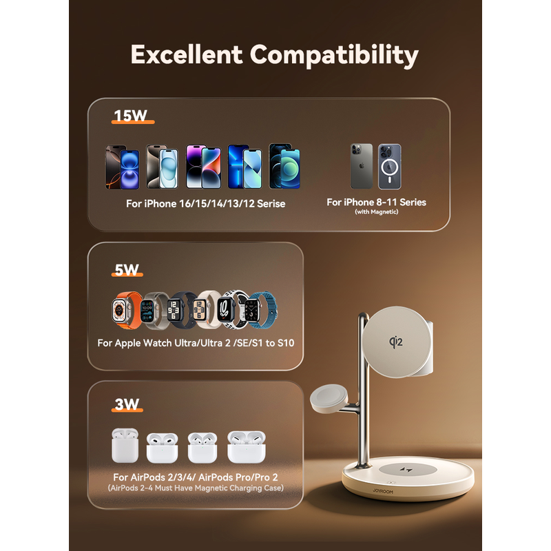 6.Multi-Device Wireless For Mag-Safe Charger: JOYROOM For MagSafe charging station simultaneously powers three Apple devices while streamlining your routine—effortlessly transitioning from bedside table to office desk to travel bag. Universally compatible with virtually all modern Apple tech, including iPhone 17/16/15/14/13/12 series, AirPods Pro4/3/2, Apple Watch Ultra, Apple Watch Series 10/9/8/7/6/5/4/3/2/1, Google Pixel 10/ 10 Pro / 10 Pro XL / 10 Pro Fold