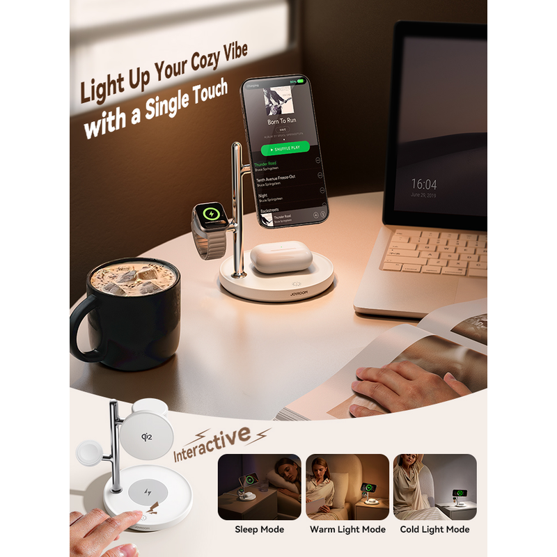 1.Innovative 4-in-1 Charging Station for Apple Ecosystem: JOYROOM Qi2.0 Certified Super Fast Wireless Charger for iPhones, offer 2X faster charging speed than ordinary 7.5W Magsafe chargers, features with a 3W fast wireless charging spot for Apple watch series, plus a 5W fast wireless charging base for AirPods.Featuring JOYROOM innovative smart interactive warm/cold adjustable night-lamp, set the perfect ambiance for comfort