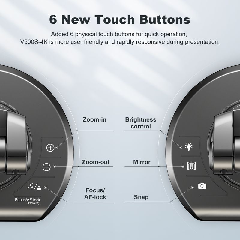 【6 New Touch Buttons】Added 6 physical touch buttons for quick operation, V500S-4K is more user-friendly and rapidly responsive during the presentation.