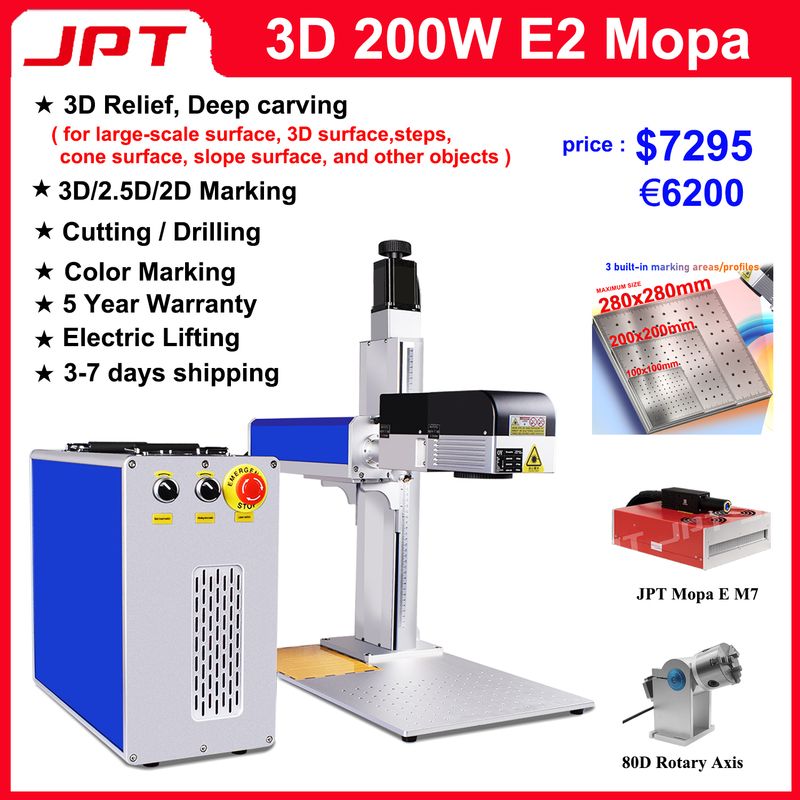 JPT 300W 3D Fiber Laser Marking Machine 200W Deep Marking Engraving for Metal Plastic Jewelry 3D Curved Marking Laser Cutting