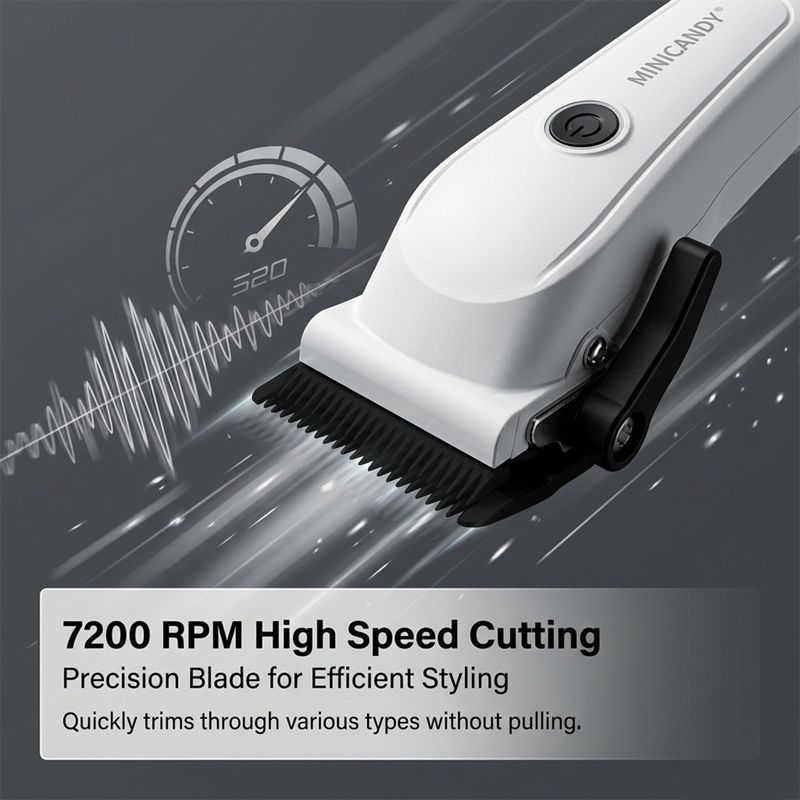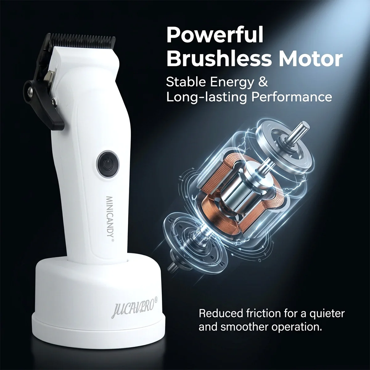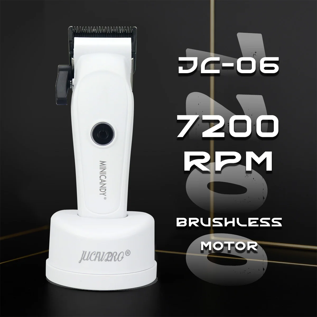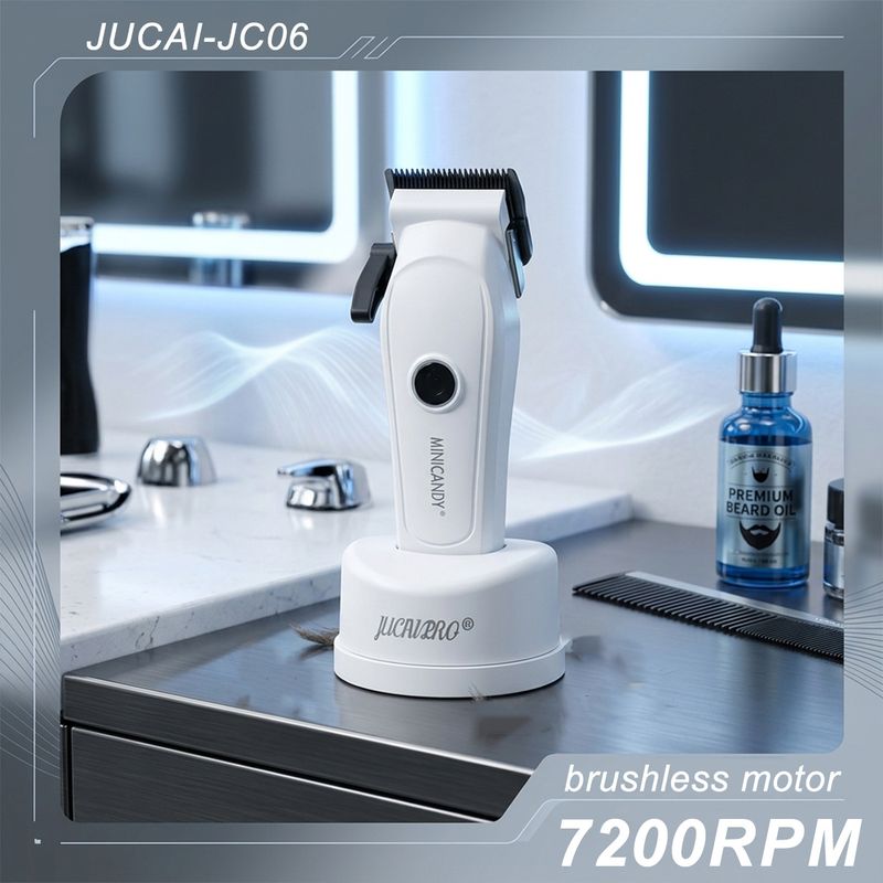 The JUCAI JC-06 Professional Hair Clipper is designed for salon-quality precision and durability. It features an ultra-thin Fade Blade for smooth, sharp cutting, powered by a high-speed 7200RPM brushless motor for consistent performance and reduced heat buildup. The built-in 3200mAh battery ensures long-lasting use, while the convenient base charger allows for easy storage and charging. With its cordless design, this clipper offers freedom of movement, making it ideal for both professional barbers and home use. Experience effortless haircuts with this powerful, reliable, and salon-grade tool.