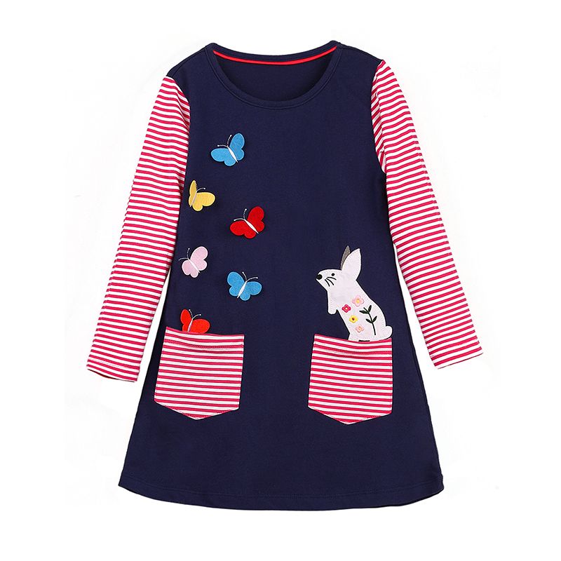 Jumping Meters 3-7T Dog Embroidery Children's Princess Girls Dresses Striped Animals Long Sleeve Autumn Kids Birthday Dress