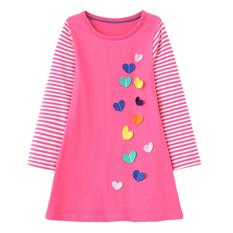 Jumping Meters 3-7T Dog Embroidery Children's Princess Girls Dresses Striped Animals Long Sleeve Autumn Kids Birthday Dress