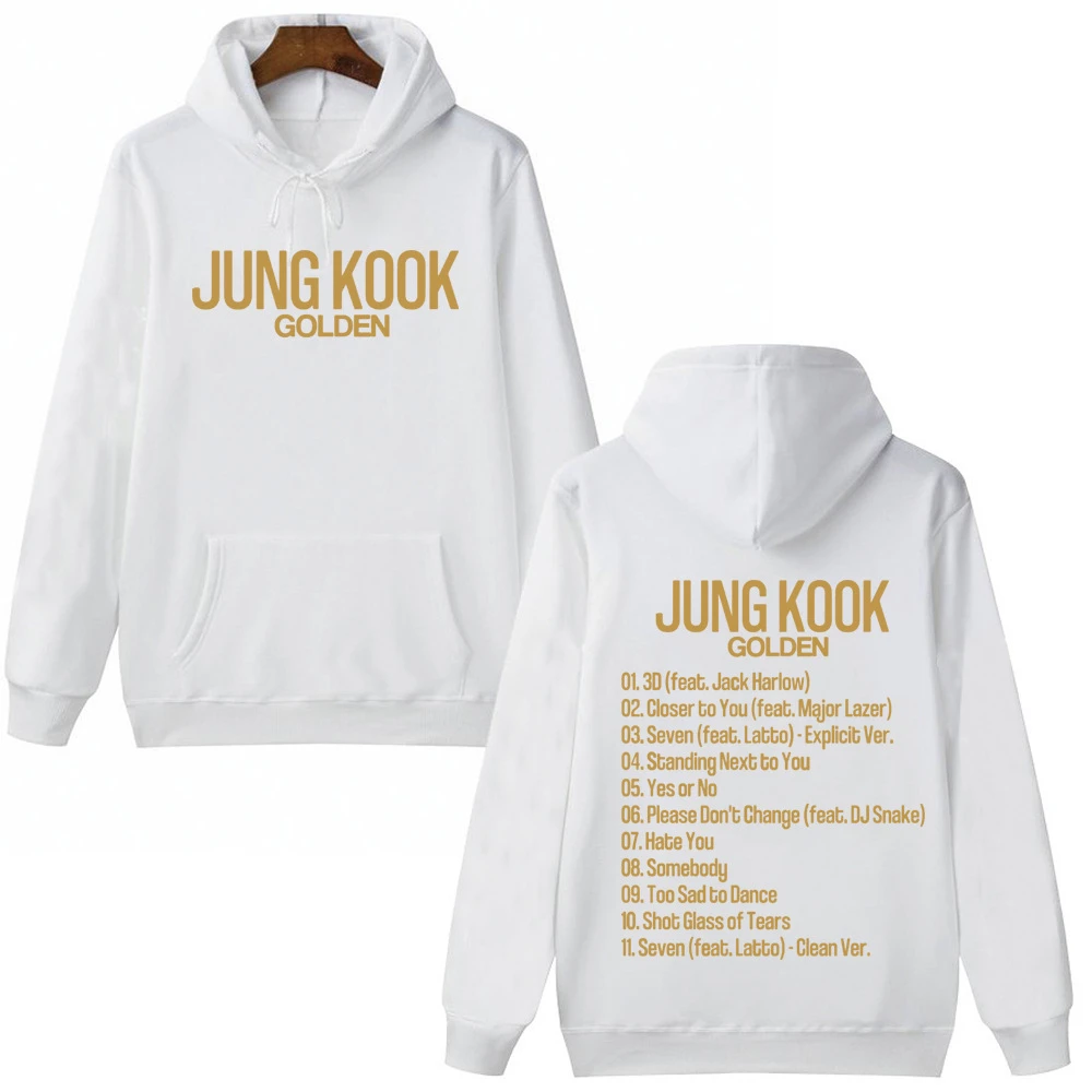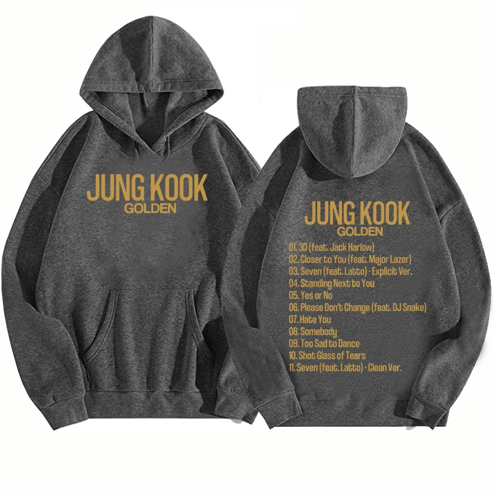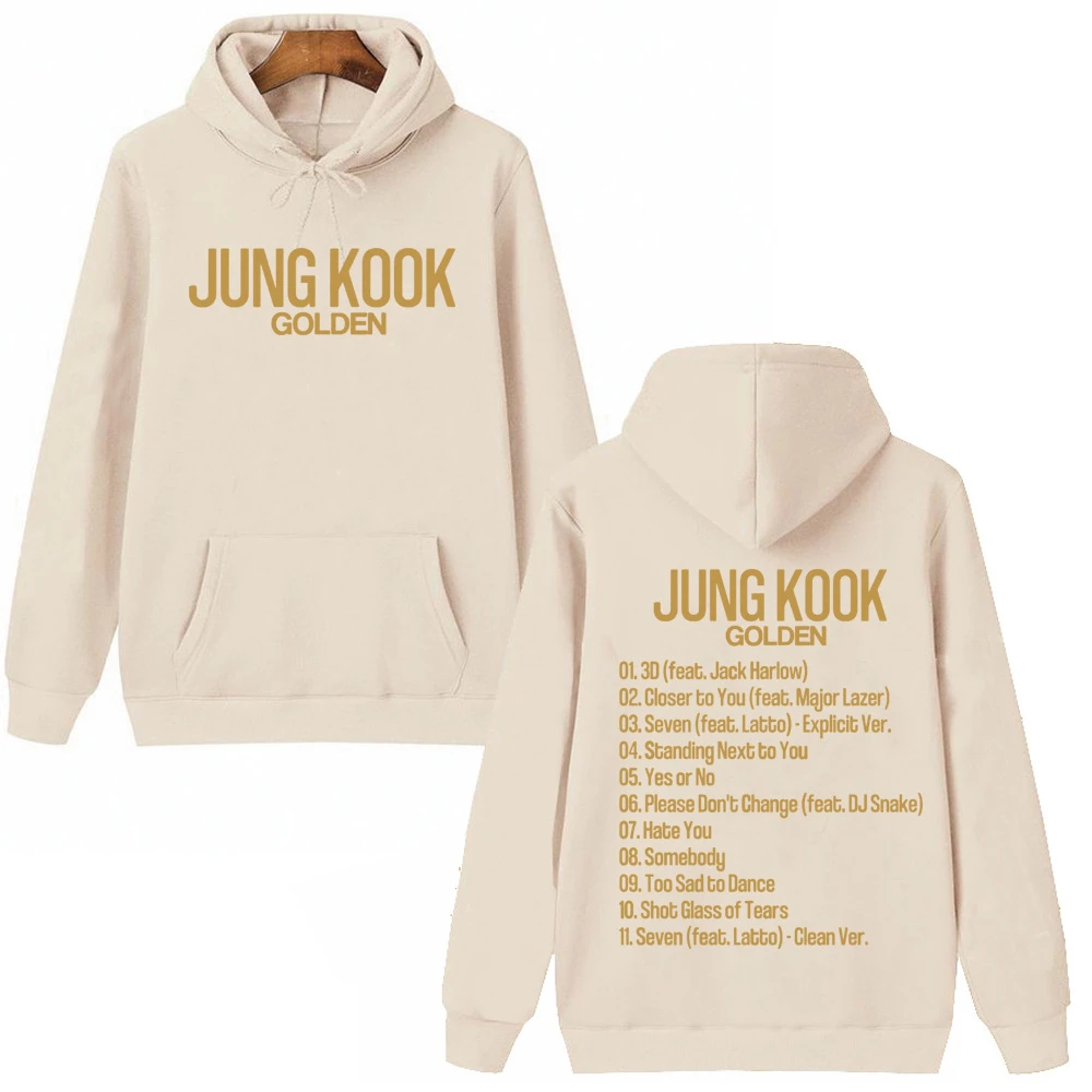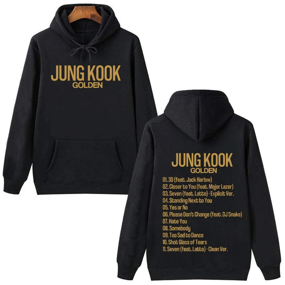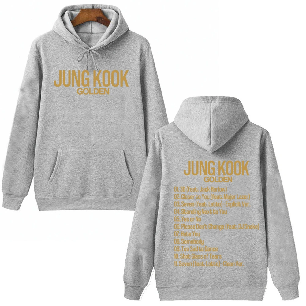 Jungkook Kpop Hoodie Gold Album Sweatshirt Harajuku Pullover Top for Men and Women Street Style Fan Gift for Men and Women