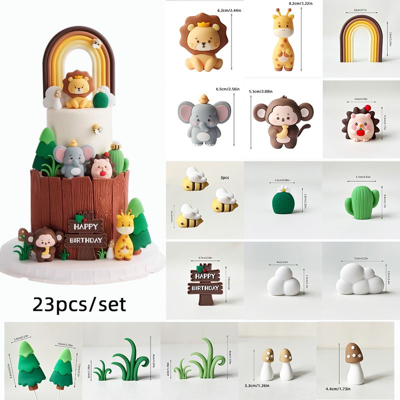 Jungle Safari Animal Cake Topper Set Lion Giraffe Monkey Elephant Zebra for Wild Theme Birthday Baby Shower Party Decor Supplies