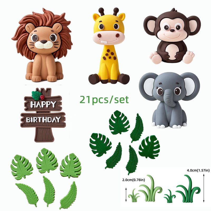 Jungle Safari Animal Cake Topper Set Lion Giraffe Monkey Elephant Zebra for Wild Theme Birthday Baby Shower Party Decor Supplies