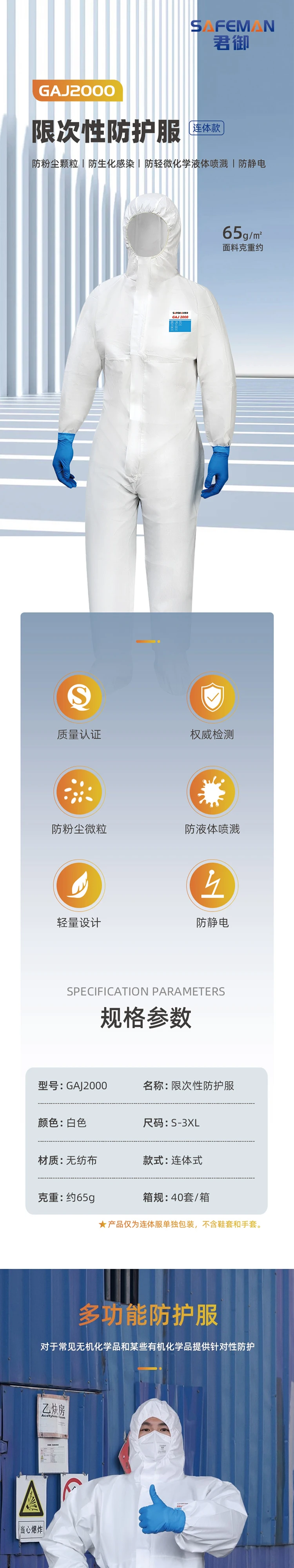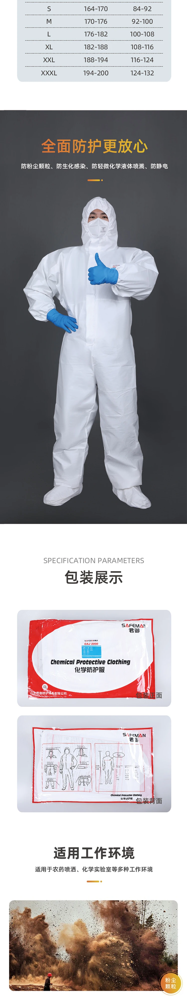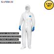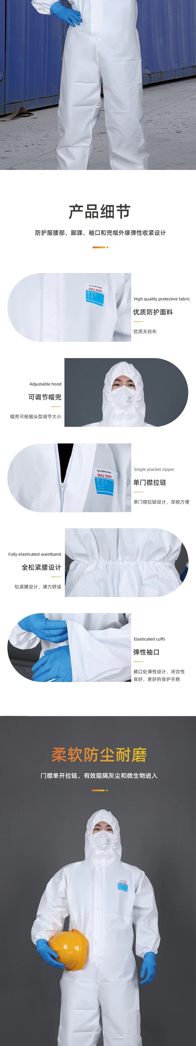 The fabric is a composite material made of polyethylene film laminated with spunbond nonwoven fabric. It offers protection against dry dust and light liquid splashes. The fabric is characterized by high strength, softness, durability, and excellent cost-effectiveness. It is reinforced with a quadruple seam, with 3-4 stitches per centimeter for a beautiful and secure finish.