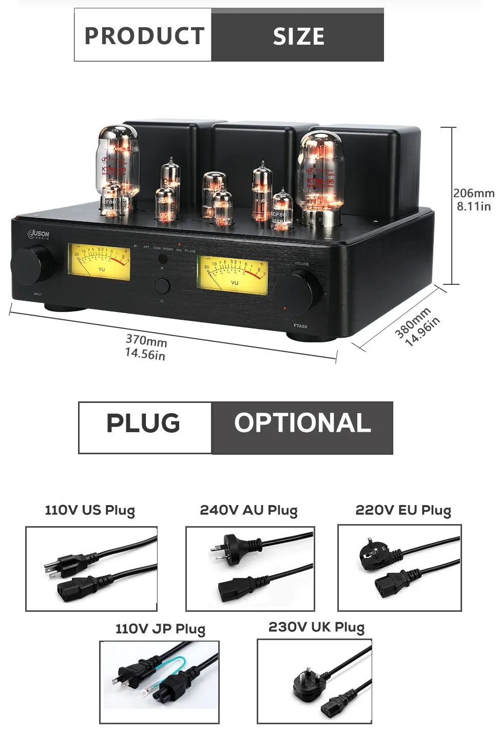 KT88 Tubes Power-Amp Output: Utilising high-quality KT88 power-amp tubes, our amplifier delivers a dynamic and full-bodied sound output, bringing life to your audio experience.