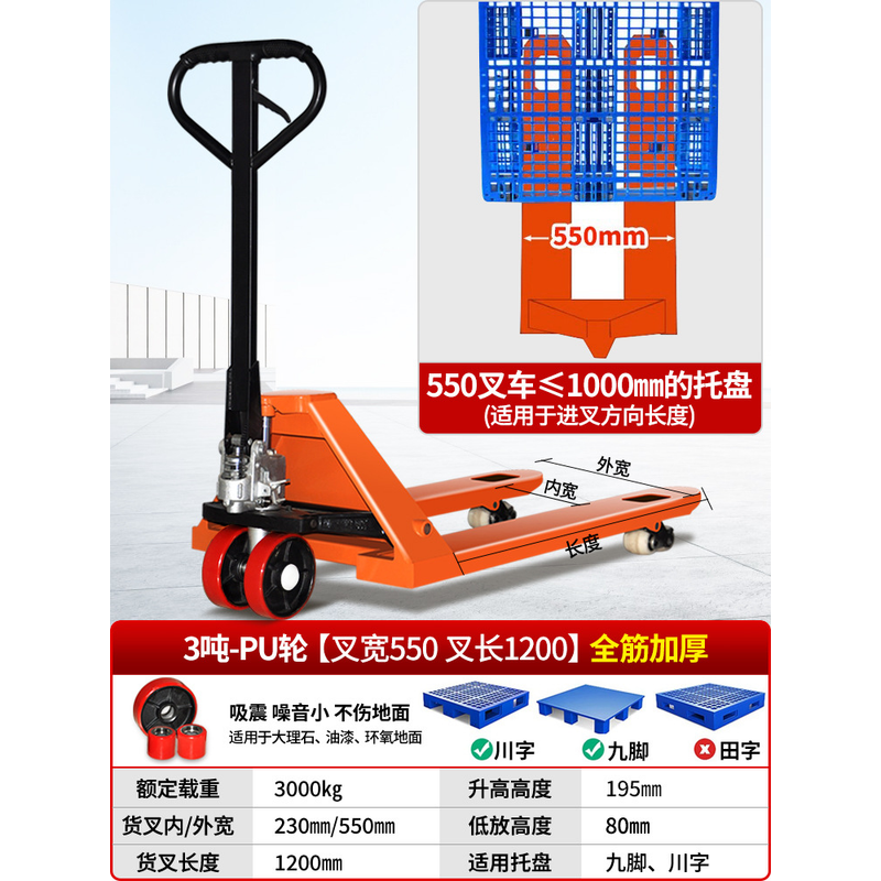 JX Ground Bull Forklift Manual Hydraulic Hand Truck 1 Ton 2T Hand Push Lifting Pallet Truck Household