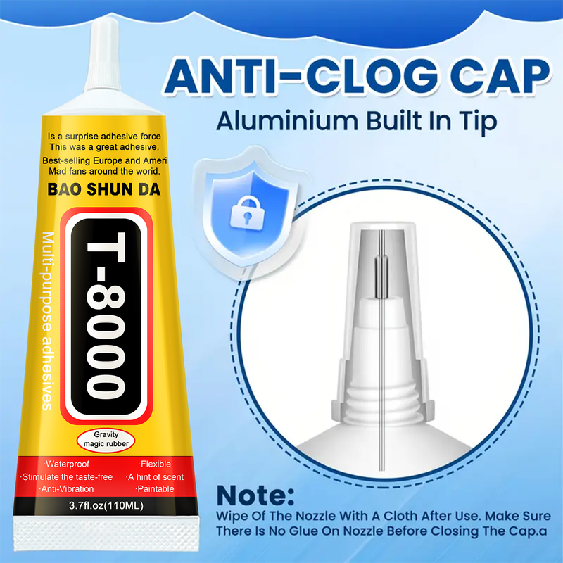 T8000 contact adhesive is the basic choice for repairing mobile phone frames (mainly for personal use), glass, plastic, leather, wood, fabric, its solid content, curing time and viscosity make it an excellent universal adhesive.