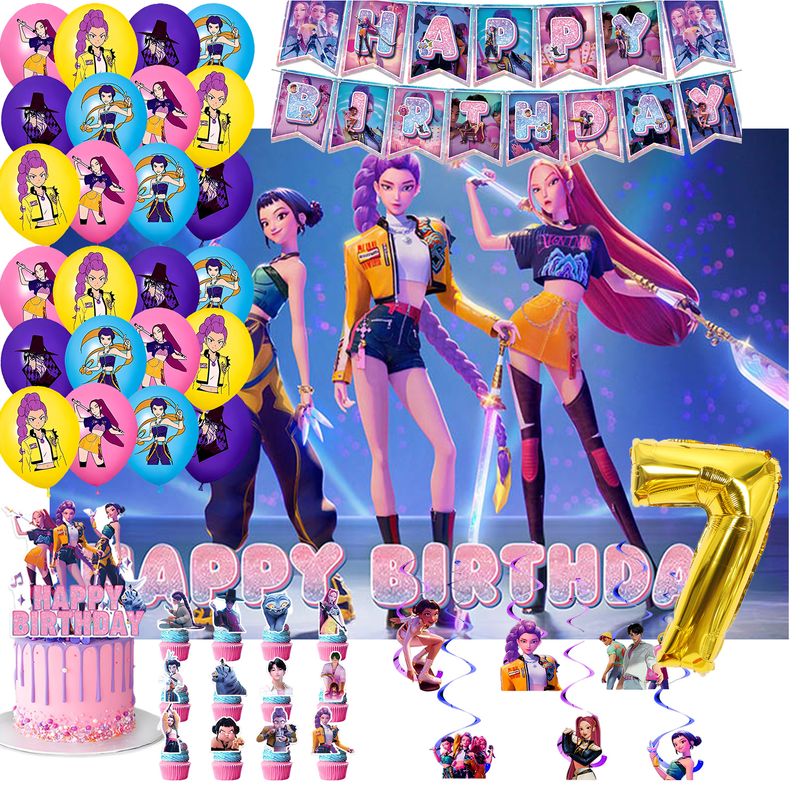k pop demon hunters Theme Birthday Party Decorations Tableware Balloon Cup Plate Banner Backdrop for Girls Baby Shower Supplies