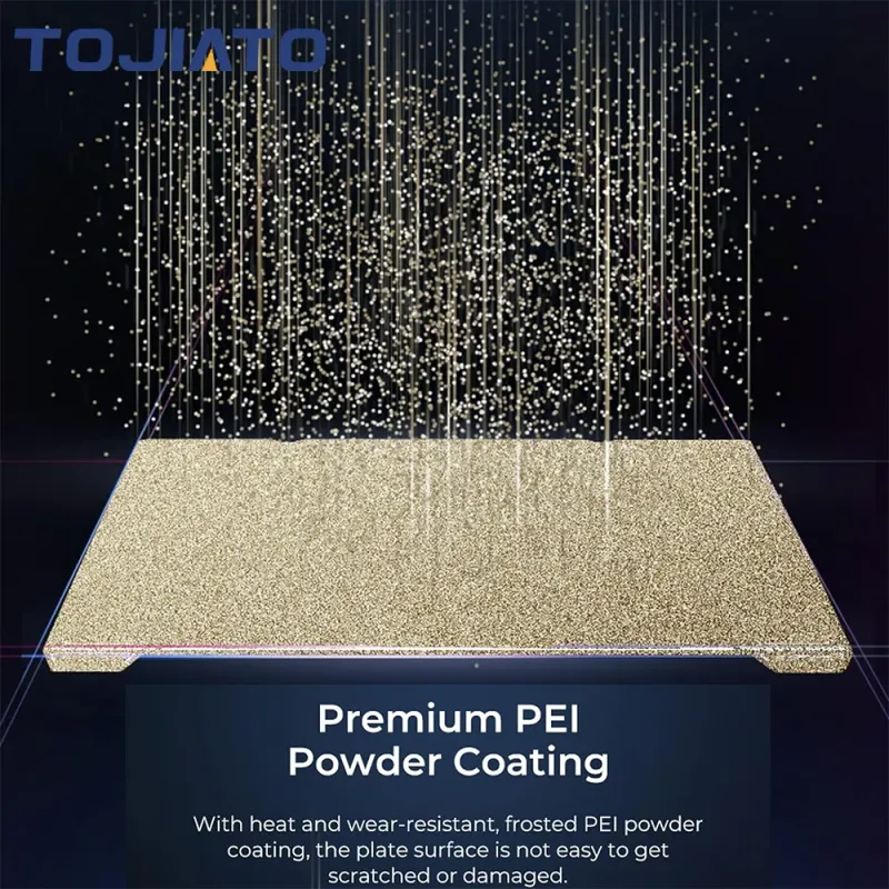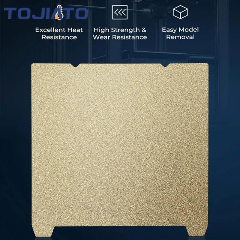 Gold PEI with frosted surface: PEI material has excellent high temperature stability, flame retradant, heat resistance, high strength, abrasion resistance and printing stability.