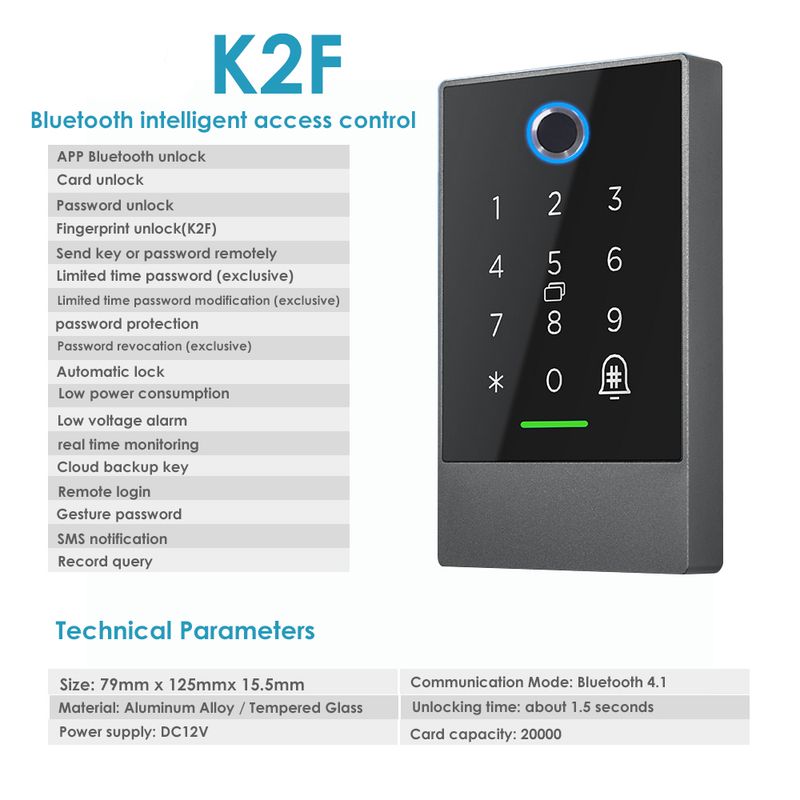 K2/K2F TTLOCK App Remote Door Access Control System Kit Touch Password 13.56Mhz RFID IP65 Rainproof Bluetooth Wifi Gateway Suppo