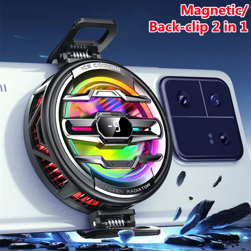 K22 Magnetic/ Back-clip 2 in 1 Mobile Phone Radiator with AI Intelligent Temperature Display 4 Gears Adjustment PUBG Game Cooler