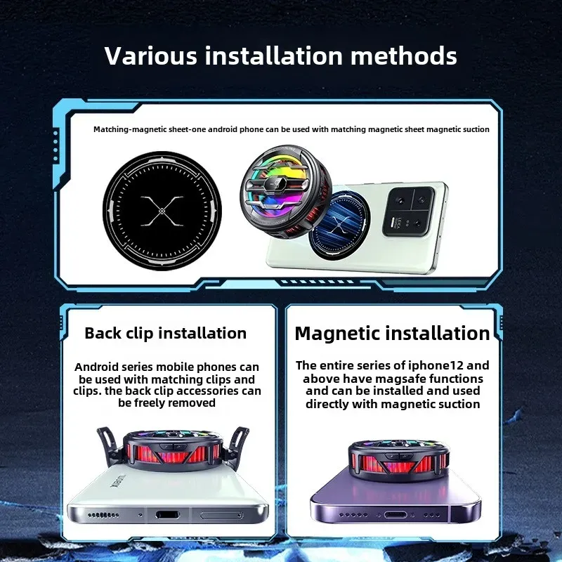 Introducing the innovative Mobile Phone Cooler, a must-have accessory to beat the summer heat and keep your mobile devices running smoothly. This 2025 NEW Cooler is designed to provide rapid icing refrigeration with its 15W high power and Magnetic/Back-clip 2 in 1 feature for easy attachment.
