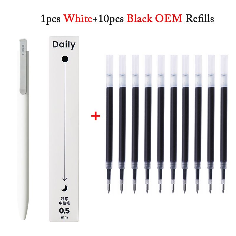 KACO Gel Pens Press Signature Pen Stationery Metal Pen Clip 0.5mm Black Ink Quicking Drying Large Capacity 800M Smooth Writing