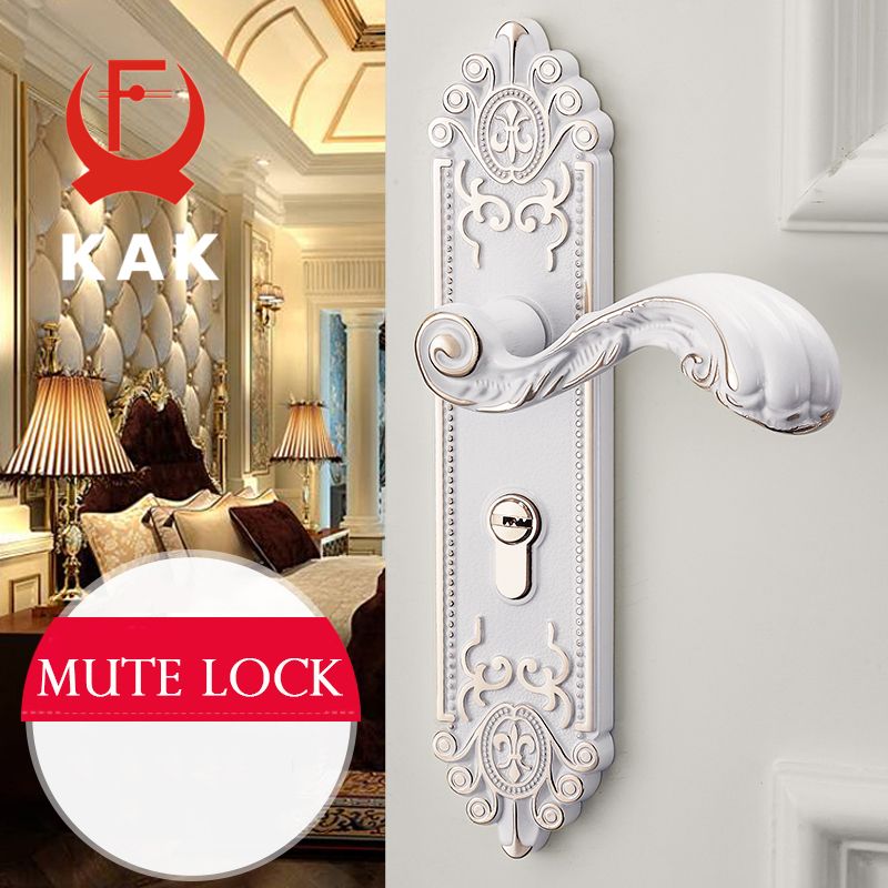 KAK European Style Mute Room Door Lock Handle Fashion Interior Door Knobs Lock Luxurious Anti-Theft Gate Lock Furniture Hardware