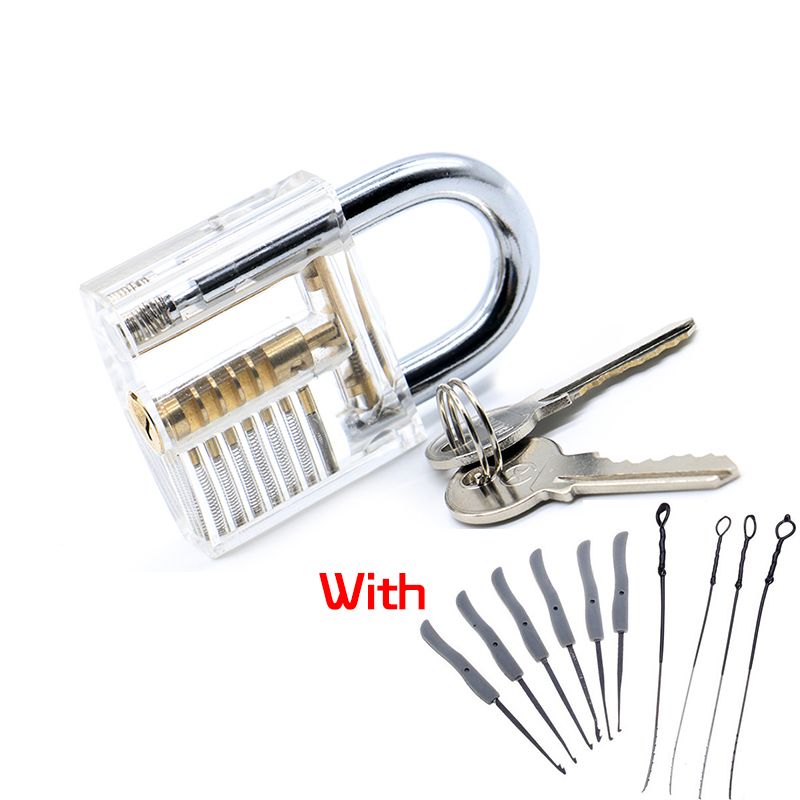KAK Transparent Visible Pick Cutaway Practice Padlock Lock With Broken Key Removing Hook Kit Extractor Set Locksmith Wrench Tool