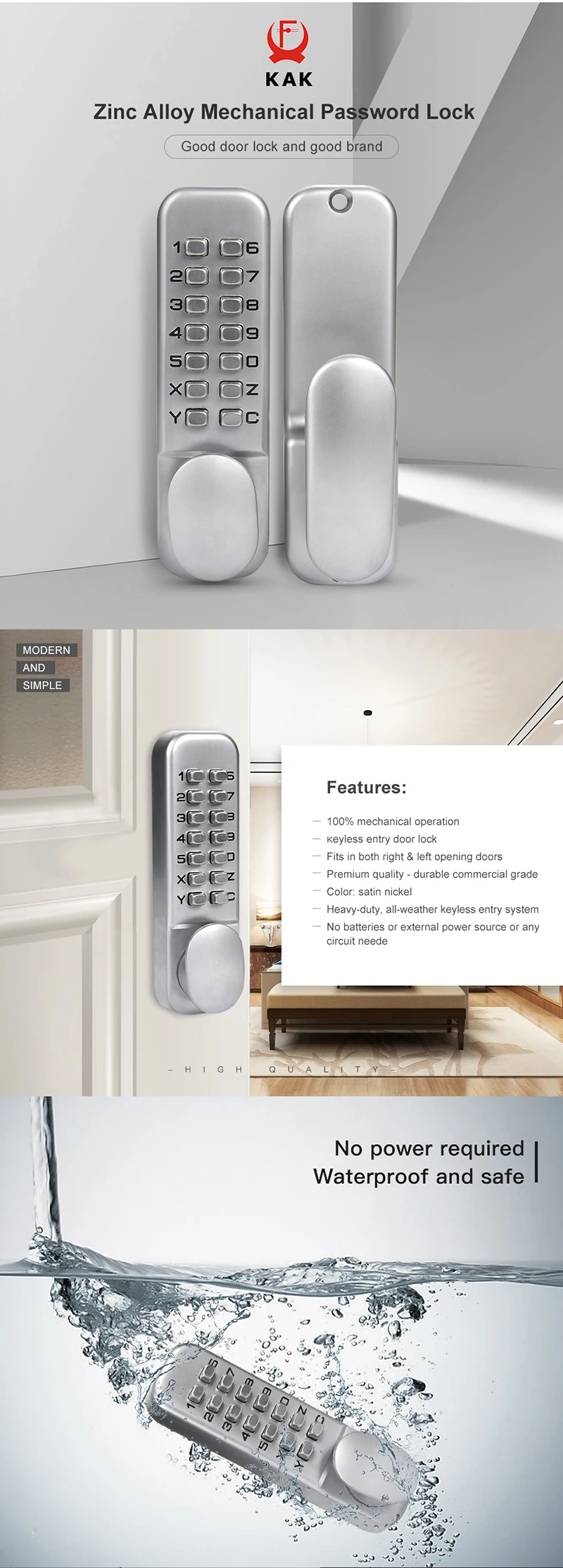 KAK Zinc Alloy Keyless Door Lock Mechanical Combination Lock Safety Door Lock Code Lock for Home Handle Door Hardware 3 Color