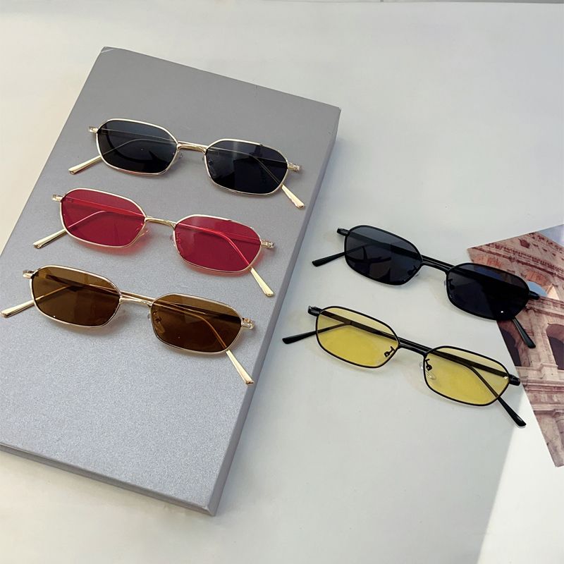 KAMMPT Vintage Rectangle Sunglasses Men Stylish Metal Rim Retro Shades Women Trendy Fashion Brand Design Decorative Sun Glasses