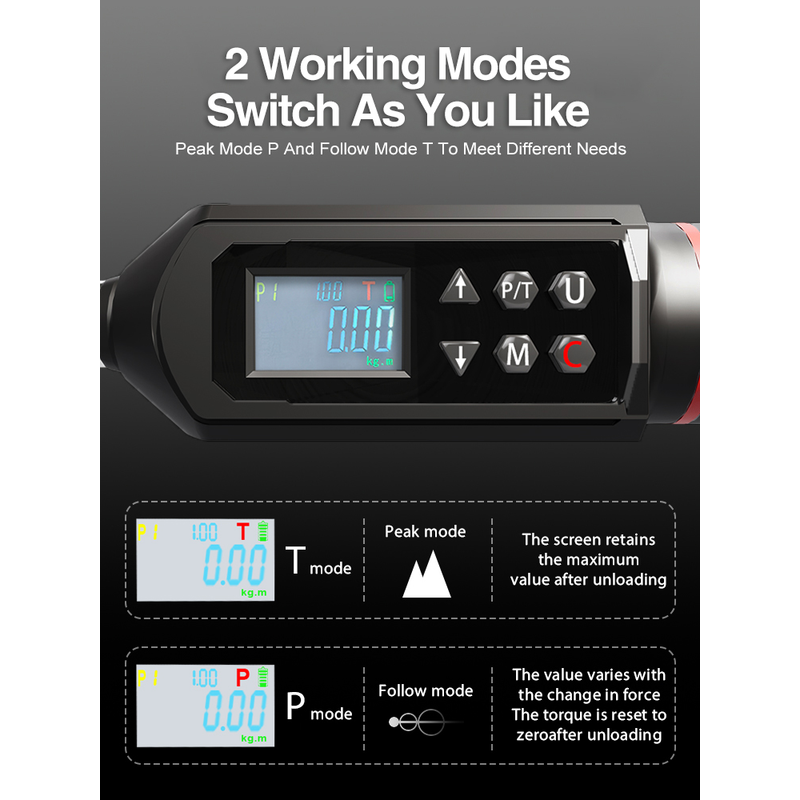 • High Precision Digital Torque Measurement:This Digital Torque Wrench Provides Accurate And Consistent Torque Readings With A High-Precision Sensor System. It Offers Real-Time Measurements In Nm, Ft-Lb, In-Lb, Or Kgf-Cm,Ensuring Precise Tightening To Meet Exact Specifications For Various Applications.