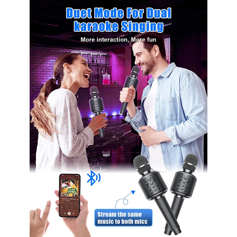 The karaoke microphone has a dual singing mode, for example, a mobile phone can be paired with 2 karaoke microphones, supporting singing with lyrics or accompaniment. Let you enjoy the joy of singing with your family or friends.