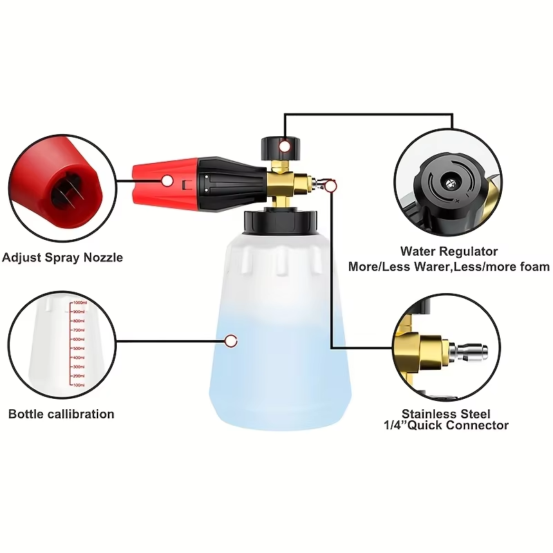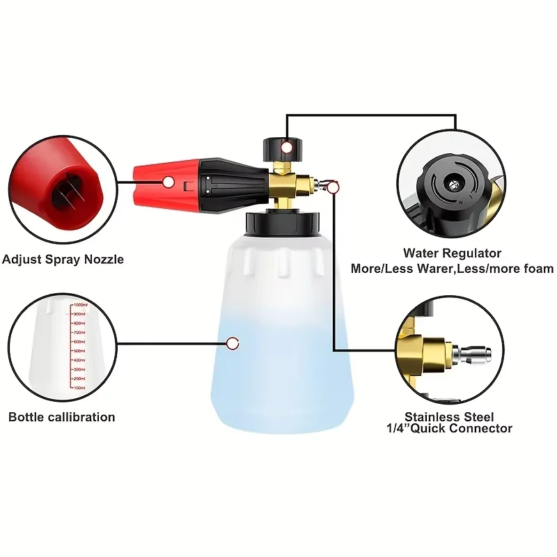 High pressure cleaner with 1/4 "quick connector, aluminum foam monitor, foam generator, snow foam gun, suitable for Karcher K series cleaner