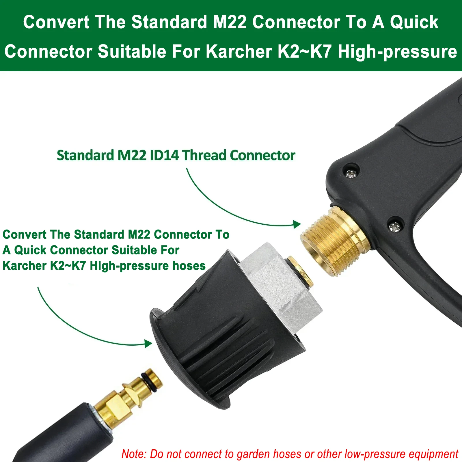 Please choose a suitable adapter for your high-pressure cleaning machine. Please check the adapter size to ensure it fits your machine. We do not assume any responsibility for the incompatibility of the adapter. If you are unsure, please carefully compare the interface appearance in the connection demonstration in Figure 3.