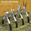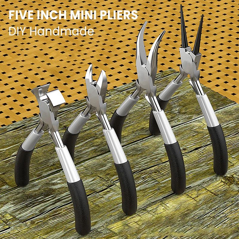 5-inch Round nose pliers, pointed nose pliers, curved nose pliers, flat nose pliers, diagonal nose pliers, steel nose pliers, long pointed nose pliers and end cutting plier