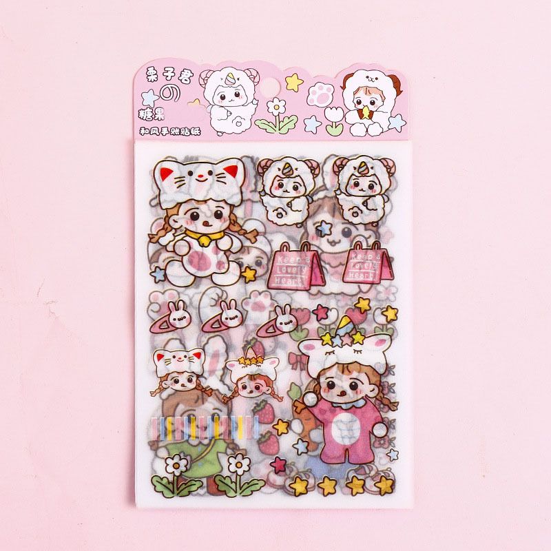 Kawai 4Pcs Pink PET Decorative Stickers Pack Scrapbooking Stationery School Supplies Korean Stickers