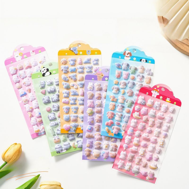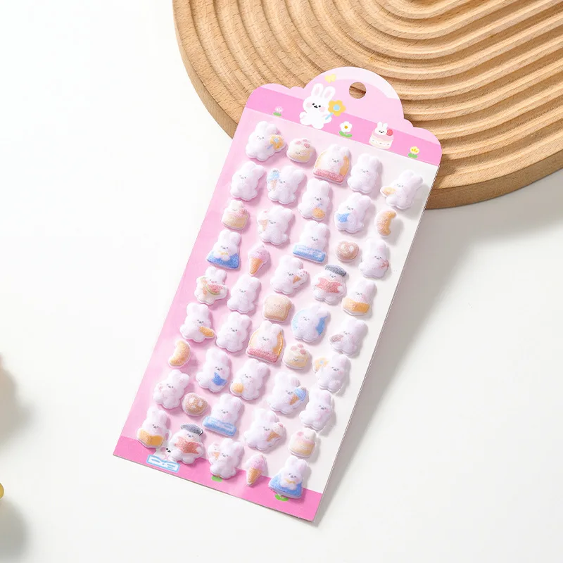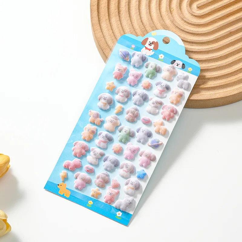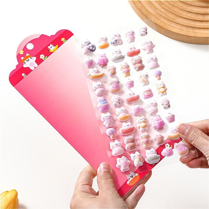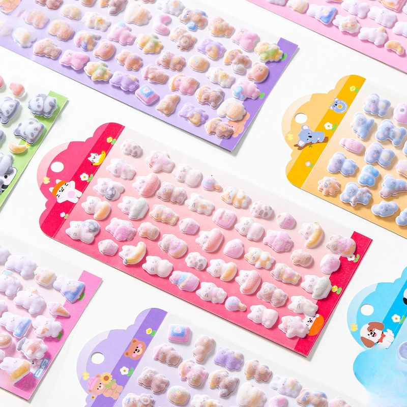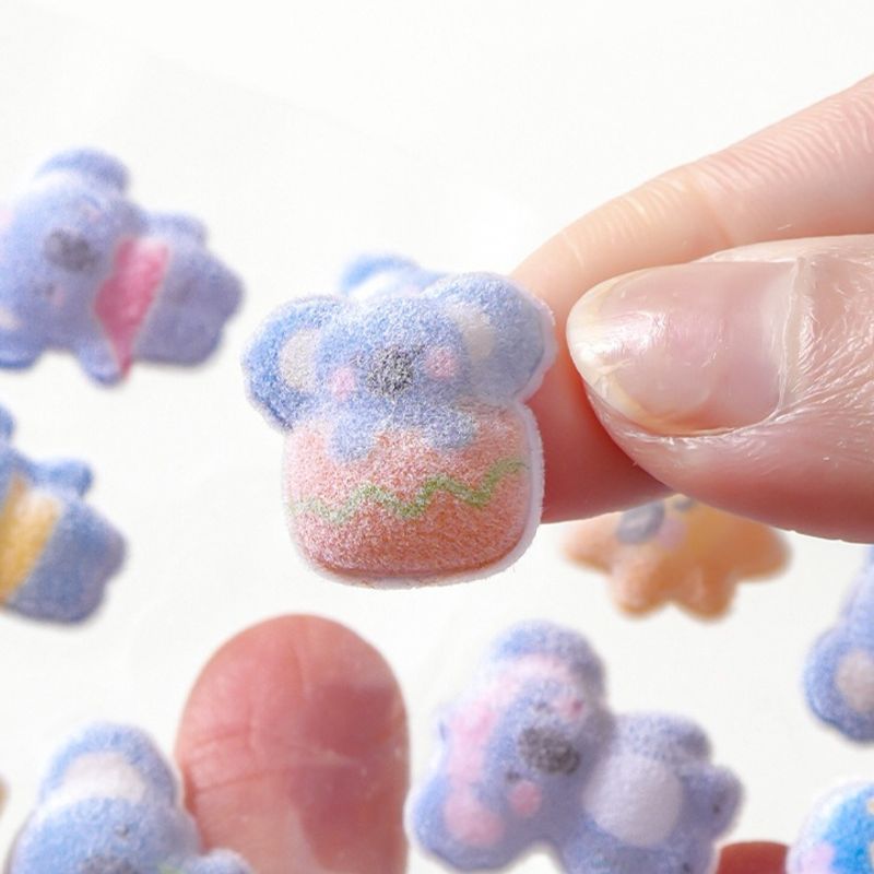 Kawaii 3D Koala Panda Relief Fluffy Animal Flocked Sticker for Scrapbooking Cute Phone Case Decoration Sticker School Stationery