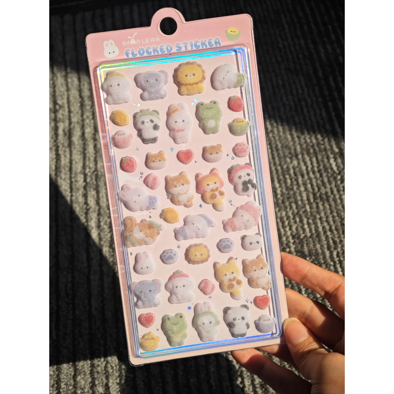 Kawaii 3D Relief Fluffy Animal Flocked Stickers for Scrapbooking Cute Phone Case Decoration Sticker School Stationery Supplies