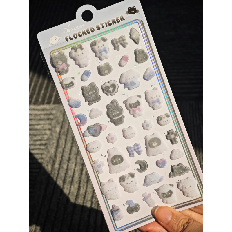 Kawaii 3D Relief Fluffy Animal Flocked Stickers for Scrapbooking Cute Phone Case Decoration Sticker School Stationery Supplies