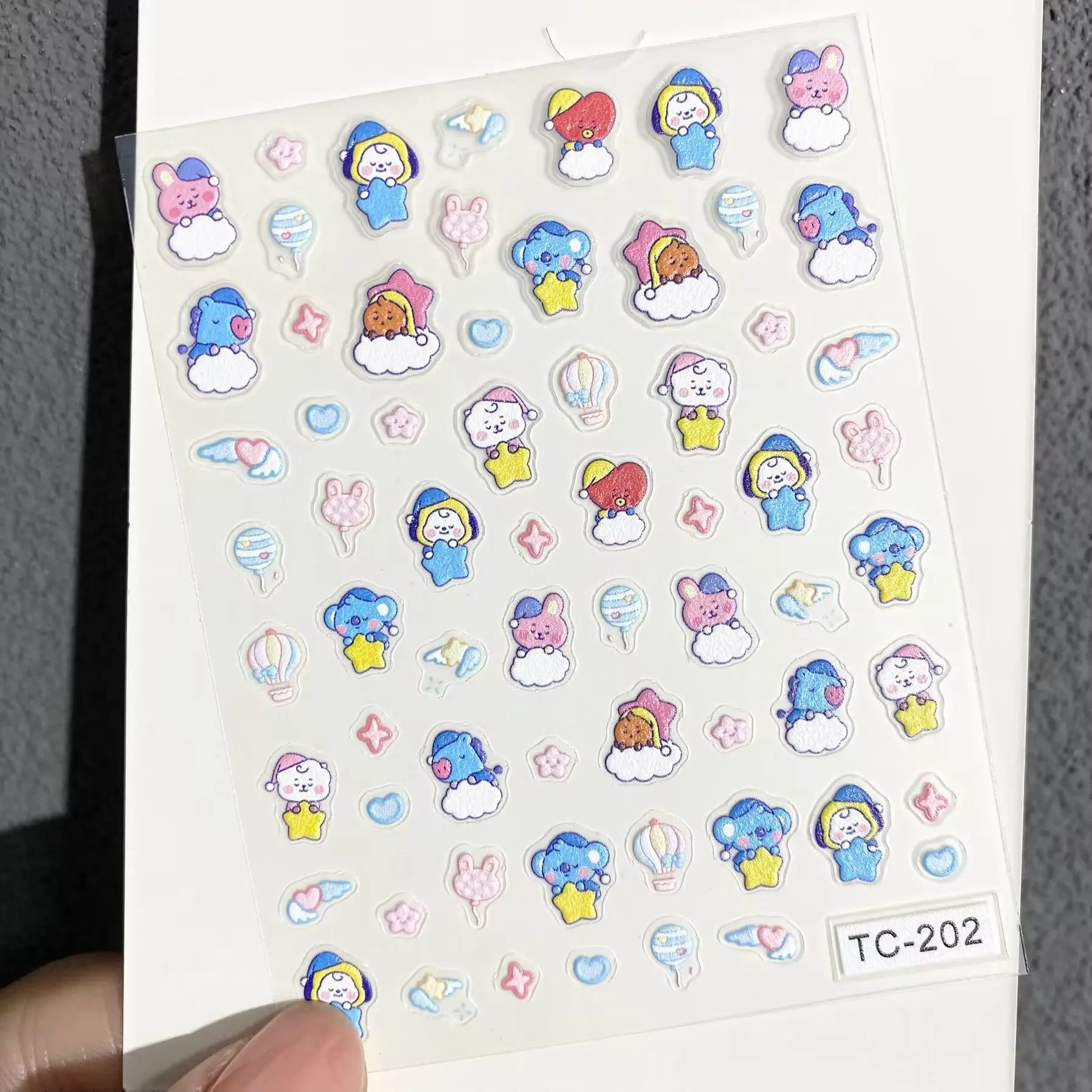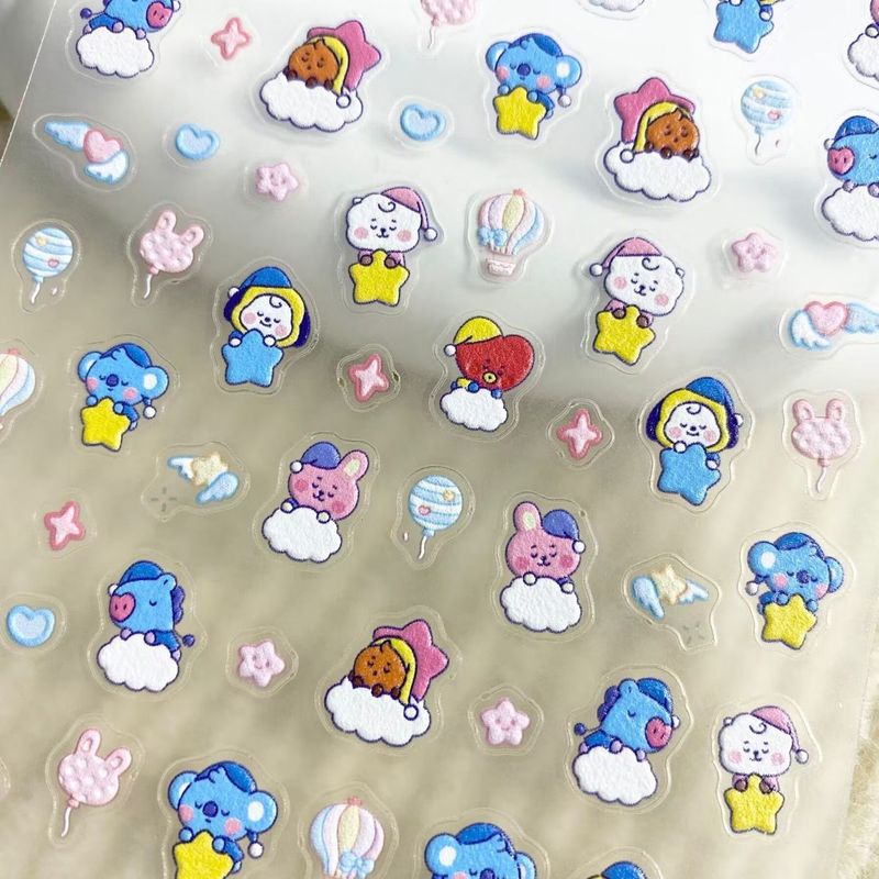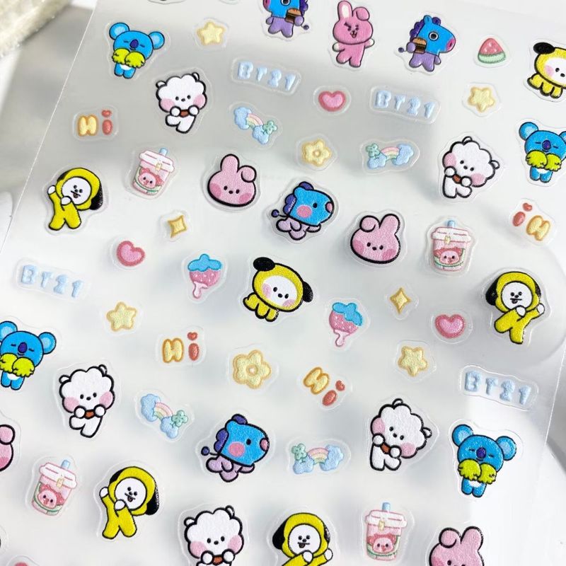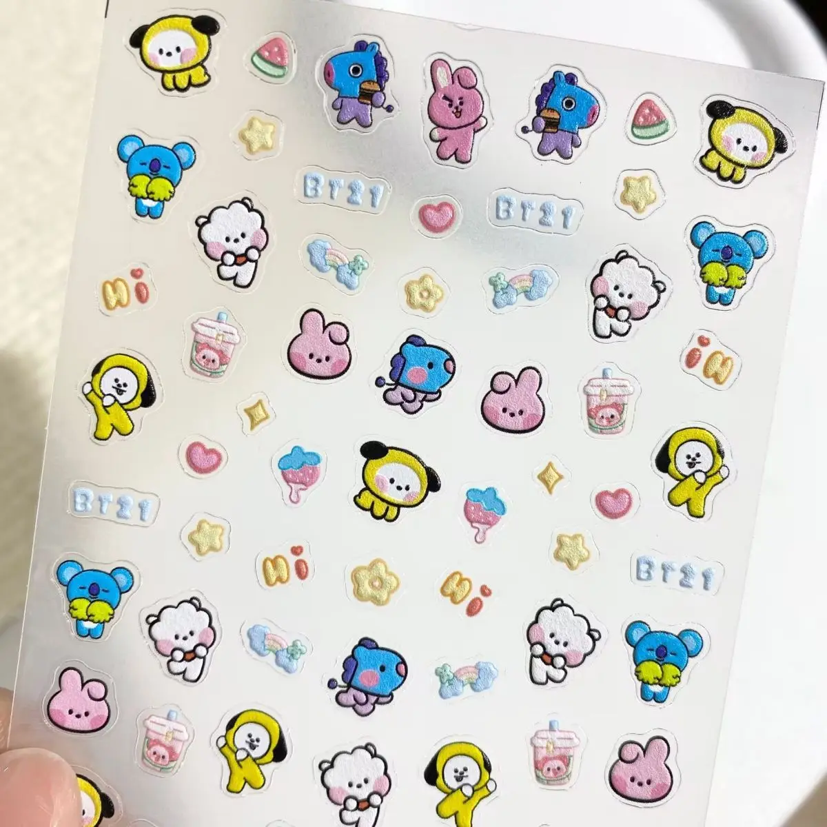 Kawaii BT21 Nail Stickers Embossed DIY Phone Cases Water Bottles Nail Decoration Stickers CHIMMY COOKY KOYA TATA Anime Gift Toys